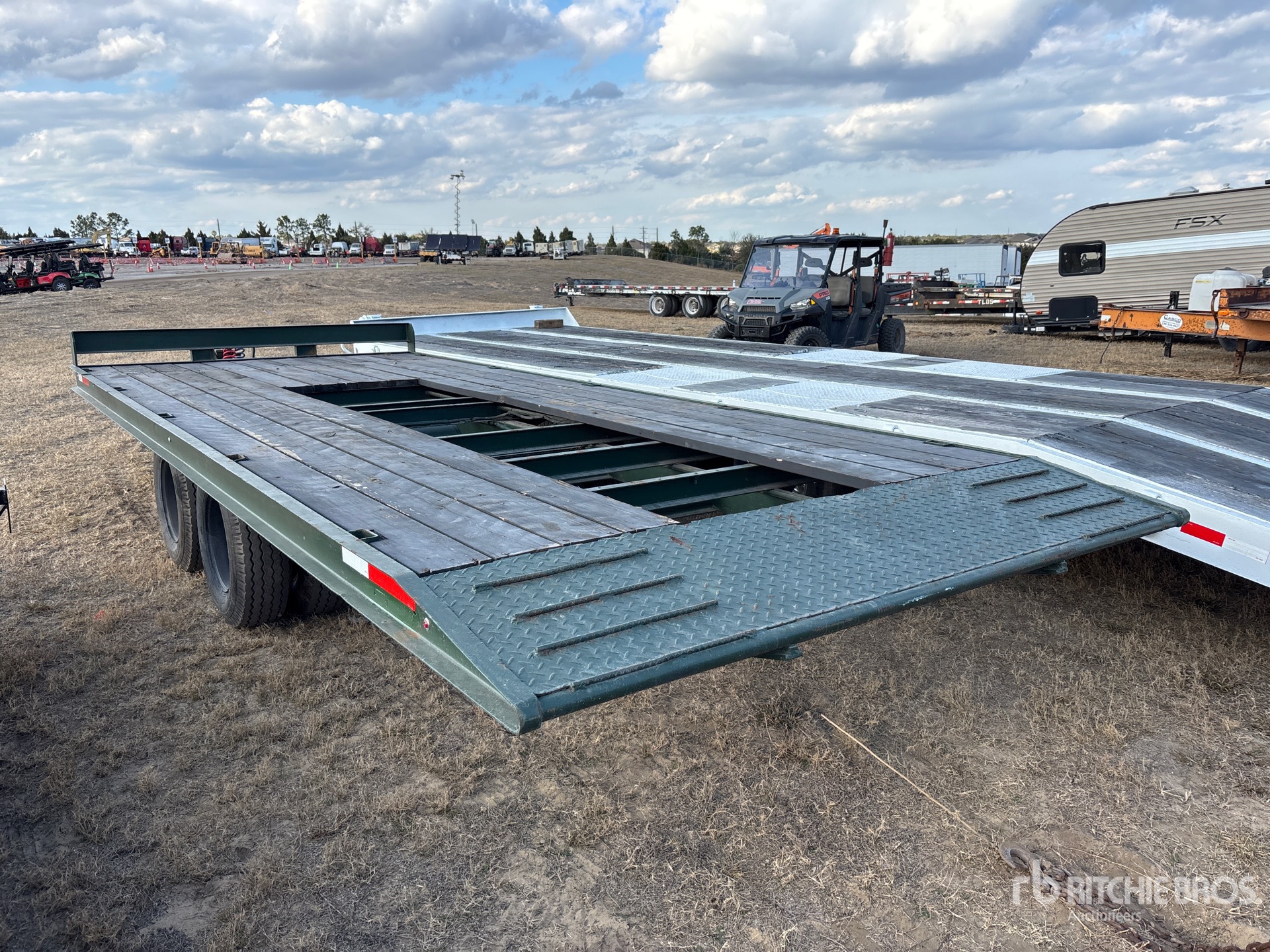 Lunette Ring Hitch, Spring Suspension, Air Brakes, 19 ft Main Deck, 102 in Usable Deck Width, 102 in Overall Deck Width, Deck Over Tires, Wood Flooring, 9.50-16.5 Tires