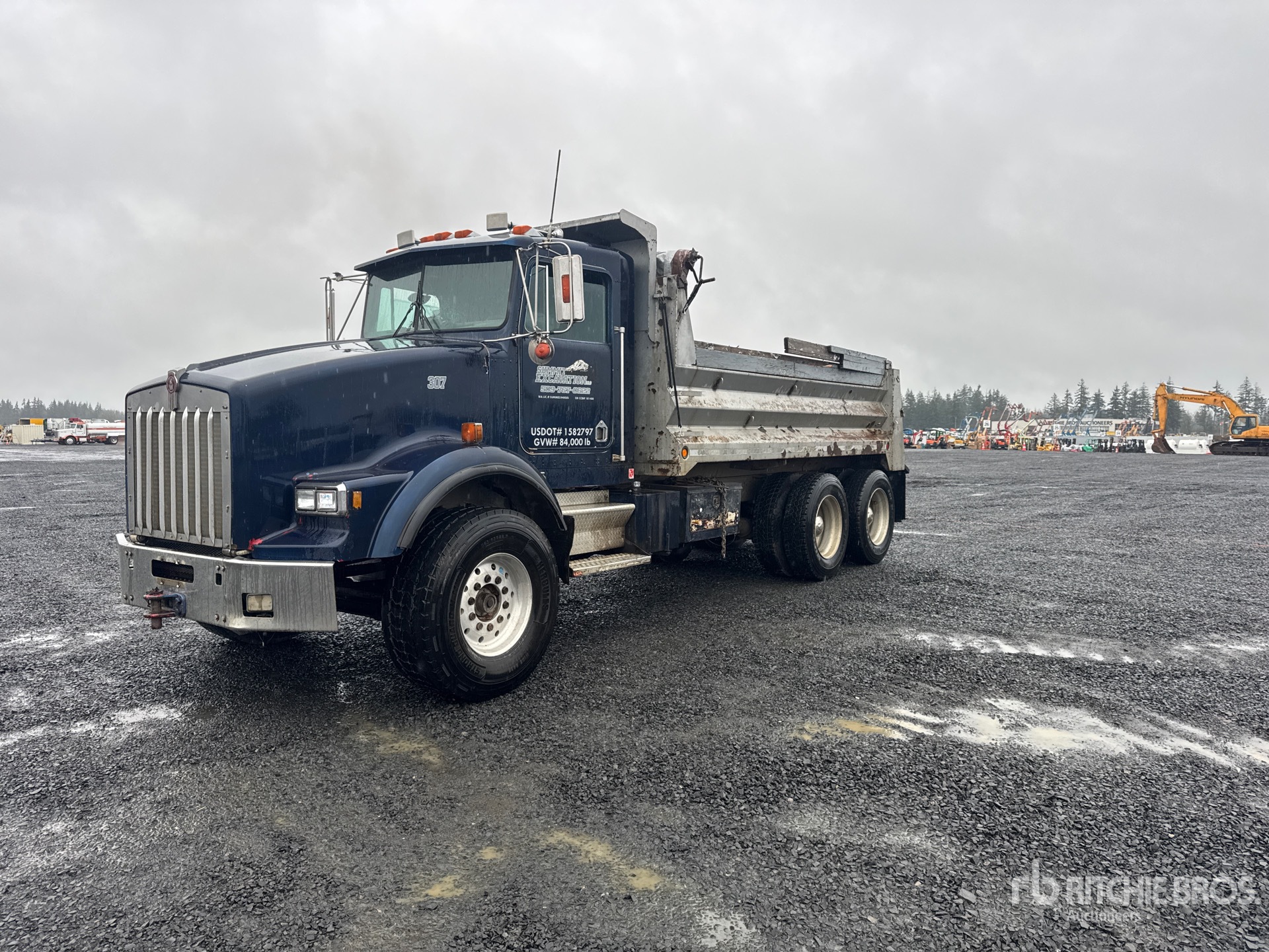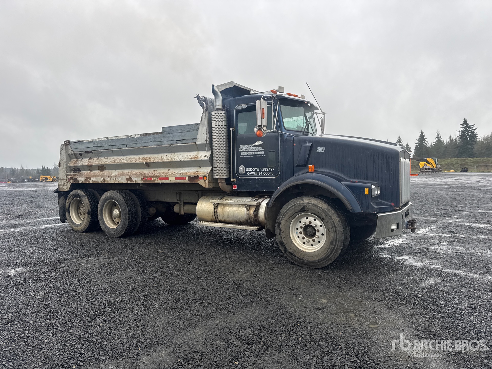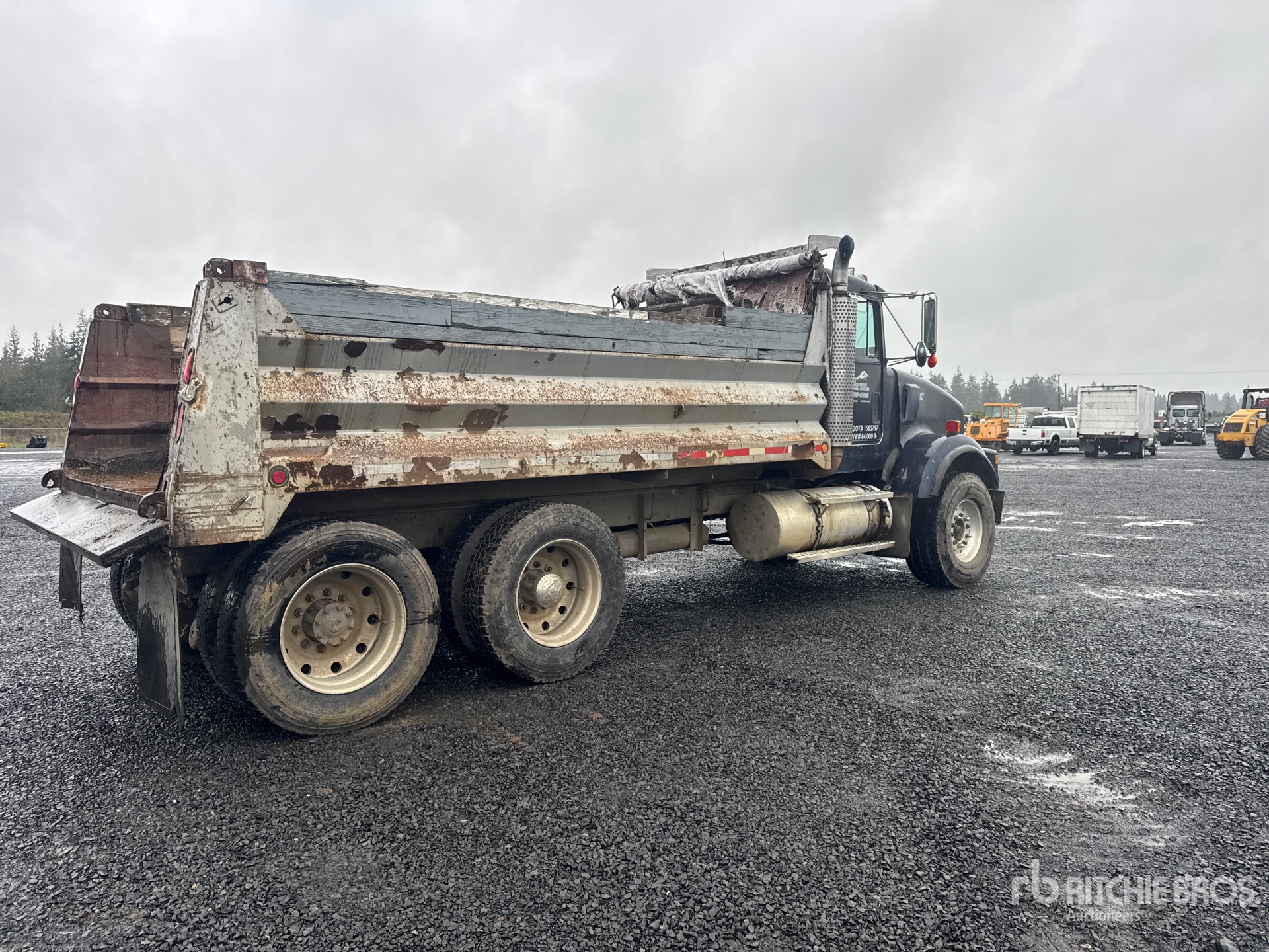 Cummins NTC-315 6 Cylinder Diesel 315 hp Engine, 1988 US EPA Label, Manual Transmission, 12000 lb Front Axle, Aluminum Wheels, 425/65R22.5 Front Tires, 11R24.5 Rear Tires, Spring over Walking Beam Suspension, 208 in Wheelbase, PTO, 16 ft 0 in Long x 3 ft 8 in High Steel Body, Manual Roll Tarp, Pintle Hitch