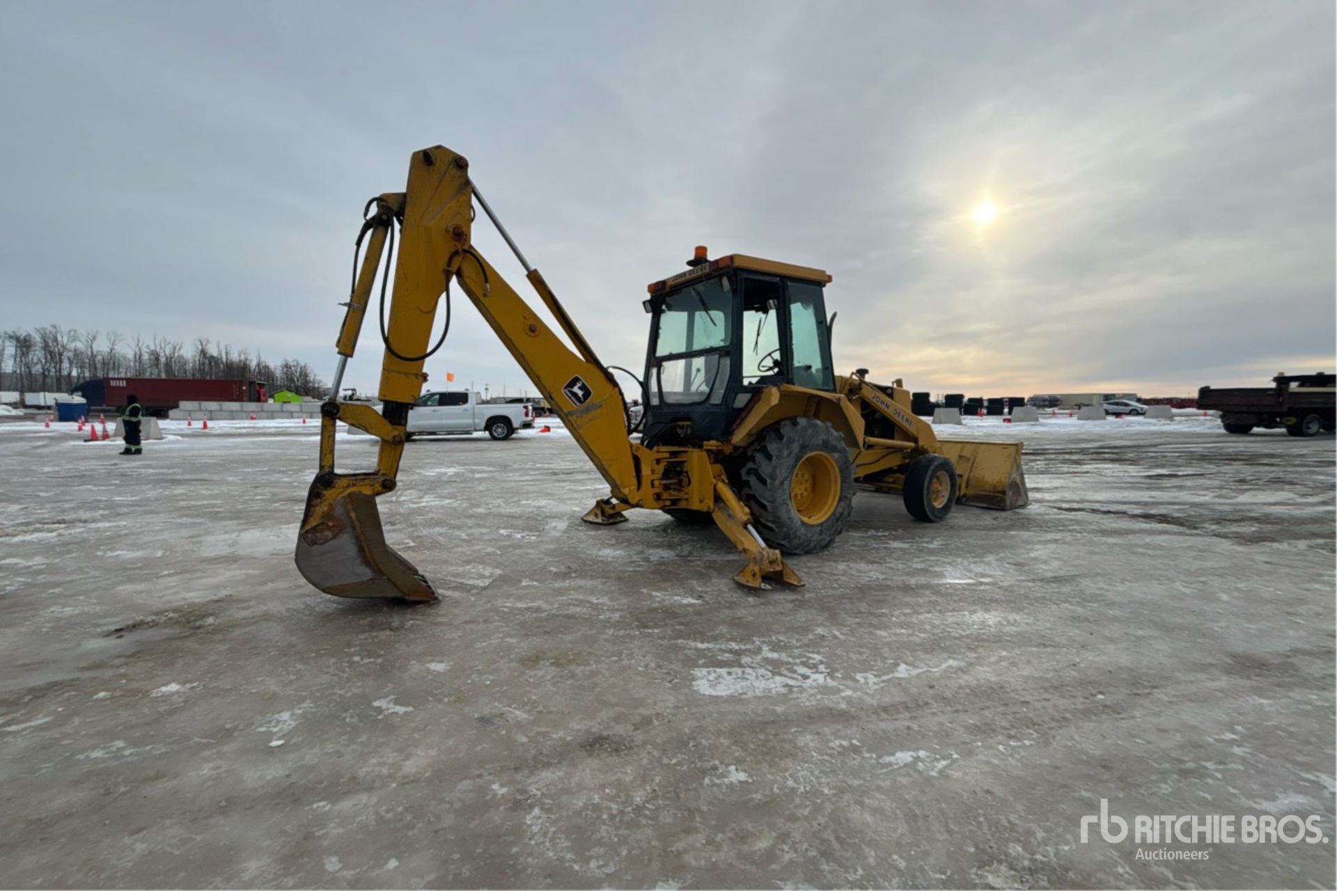 Enclosed Cab, 90 in Loader Bucket, Extendable Stick, 23 in Backhoe Digging Bucket