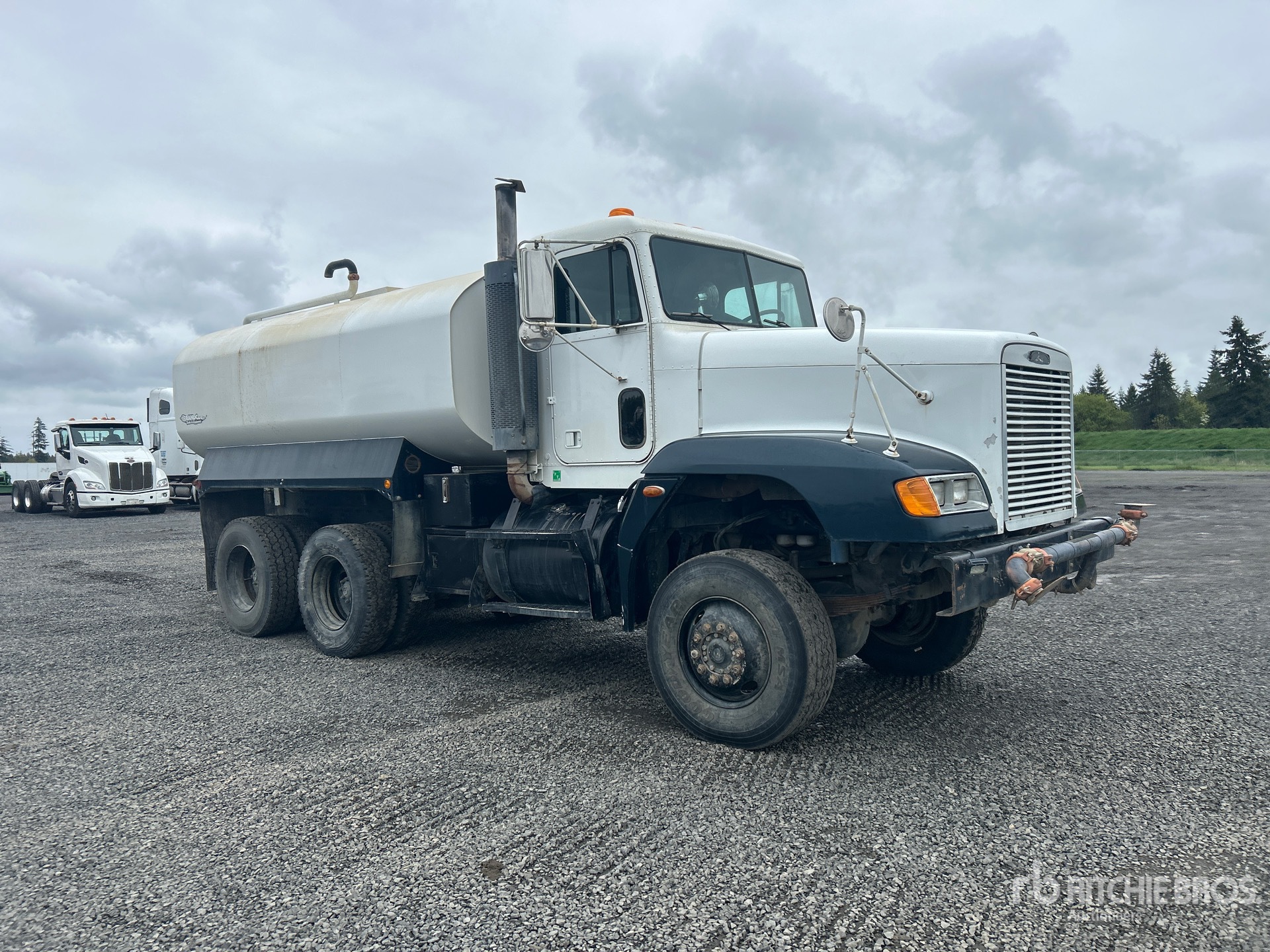 Detroit Series 60 6 Cylinder 12.7 L Diesel Engine, Engine Brake, Allison HT-740 4 Automatic Transmission, 13720 lb Front Axle, 14020 lb Rears, Rockwell RT-52-160P Drive Axles, 68000 lb GVWR, 315/80R22.5, Hendrickson Spring over Walking Beam Suspension, 175 in Wheelbase, PTO, Randco Tank, Pentair Hydraulic Driven Pump, 6 ft 8 in, Spray Bar, Hose Reel, Front Spray, Rear Spray