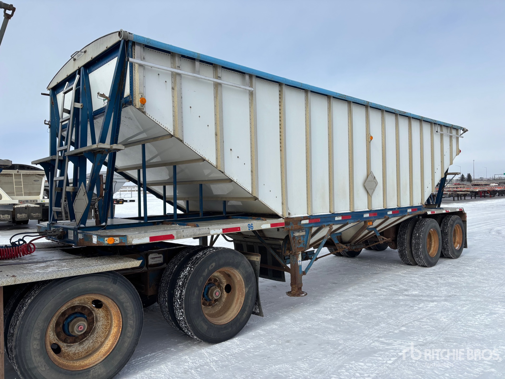 Air Ride Suspension, Air Brakes, 2 Hoppers, Manual Traps, 31 ft Steel Box, 74 in, Side Walls, Open Ended, Manual Roll Tarp, 11R24.5 Tires, 33000 kg GVWR