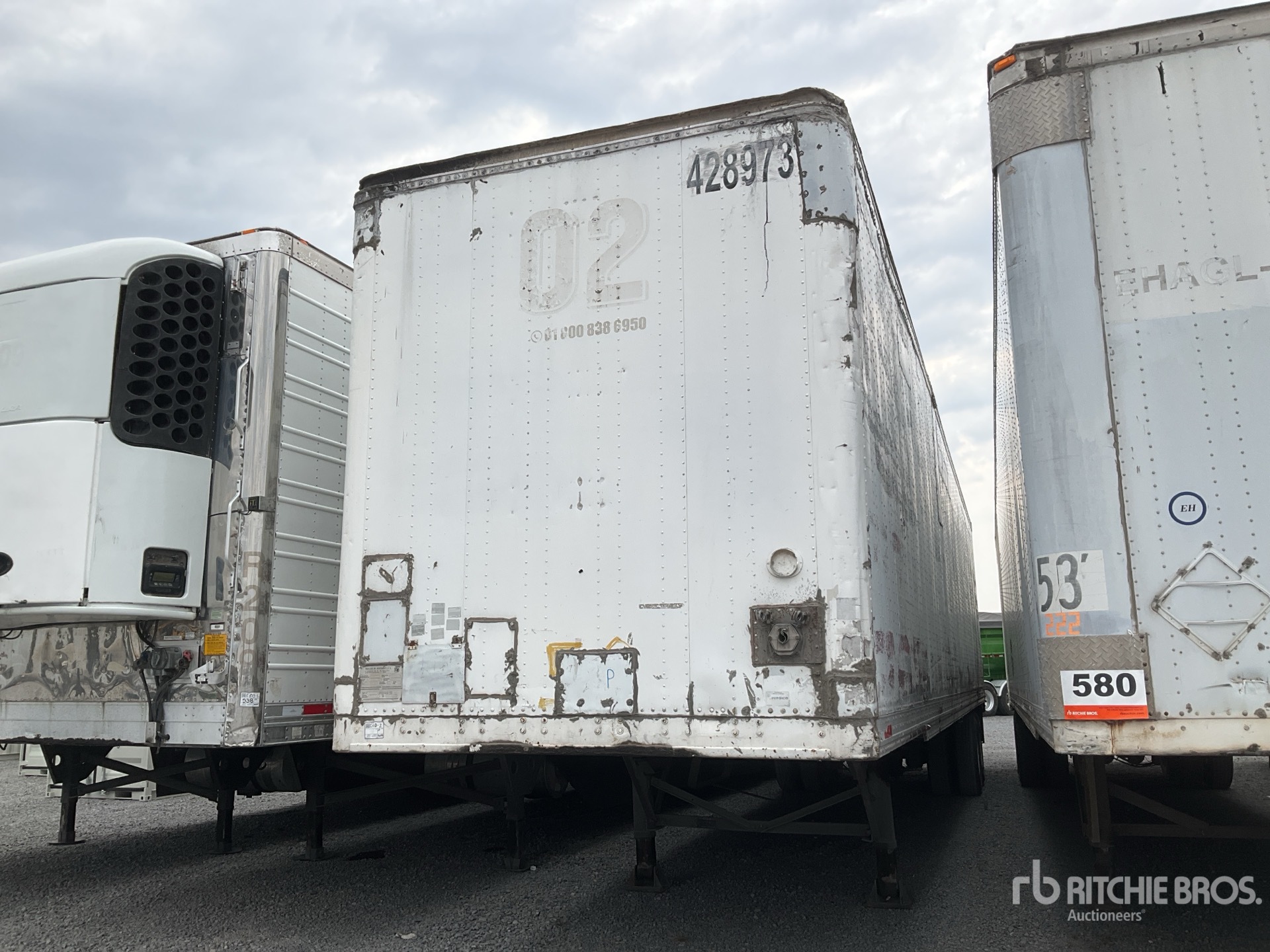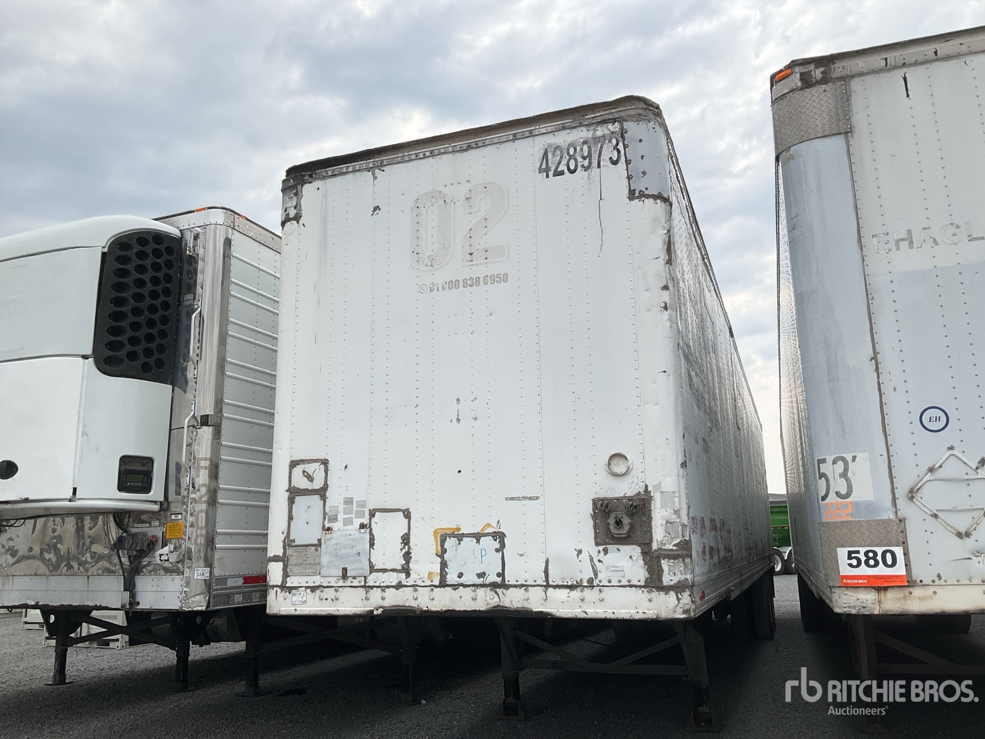 Located in Lane 15 Spot 26, Air Ride Sliding Suspension, Hardwood Floor, Swing Door, 295/75R22.5 Tires 68000 lb GVWR, / Suspension Deslizable de Aire, Piso de Madera, Puertas de Apertura Lateral, Llantas 295/75R22.5, PBV 68000 lb