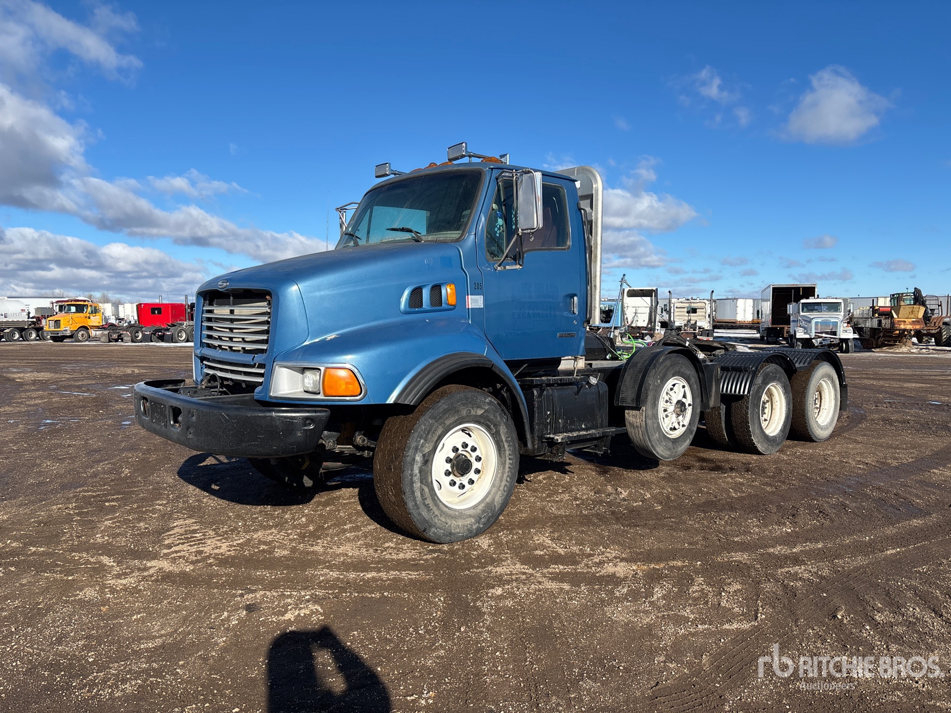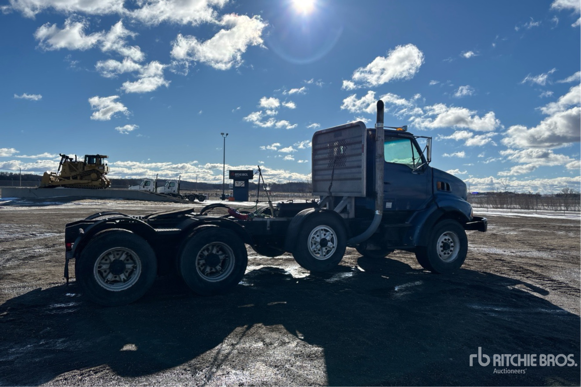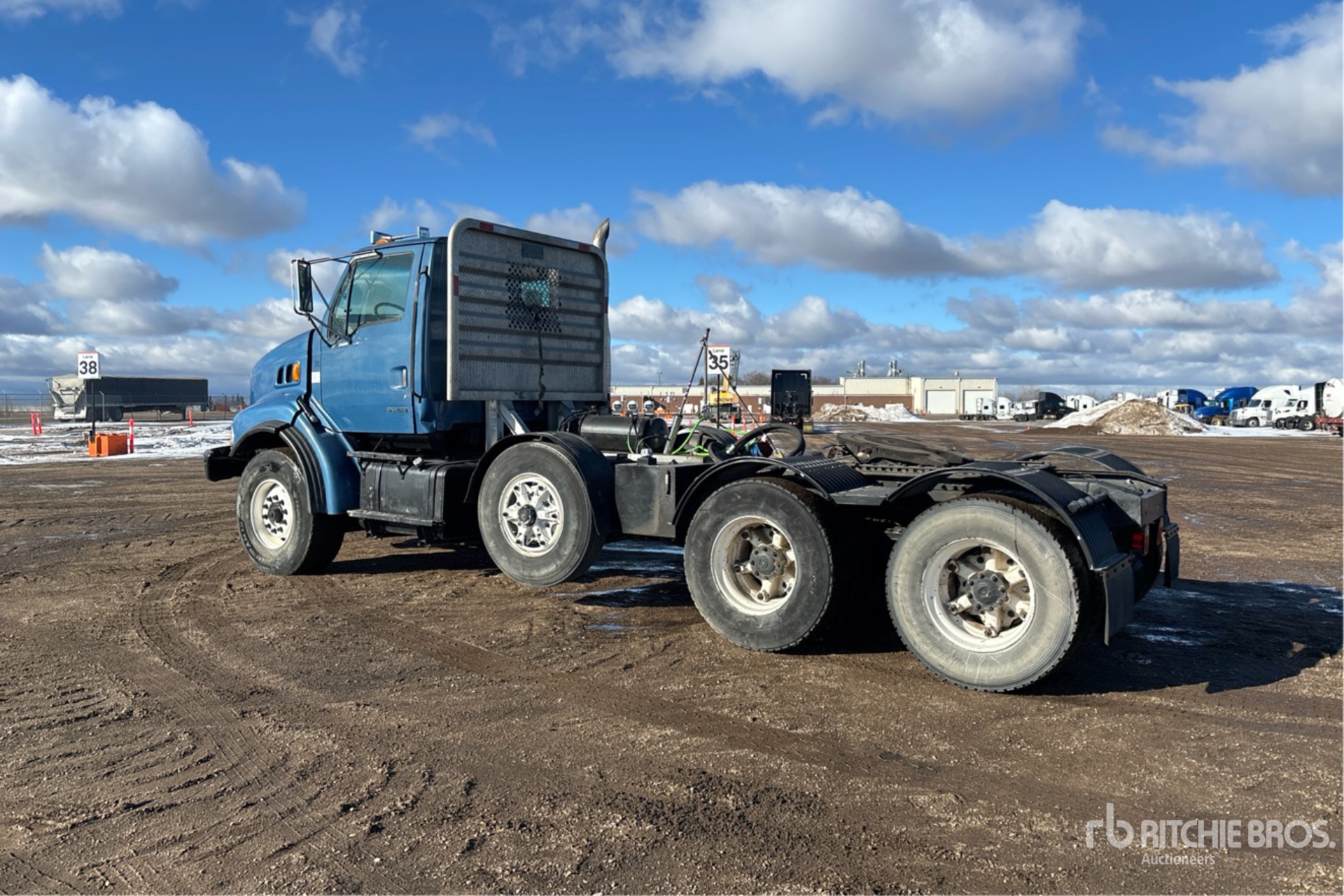Located in Lane 7 Spot 3, Cat C10 320 hp Engine, Eaton Fuller 8LL Manual Transmission, 20000 lb Front Axle, 20000 lb Rears, 60000 lb GVWR, 210 in Wheelbase, Spring Suspension, Air Lift Pusher Axle, 425/65R22.5 Front Tires, 11R22.5 Rear Tires, Wet Kit, Air Sliding 5th Wheel, Headache Rack