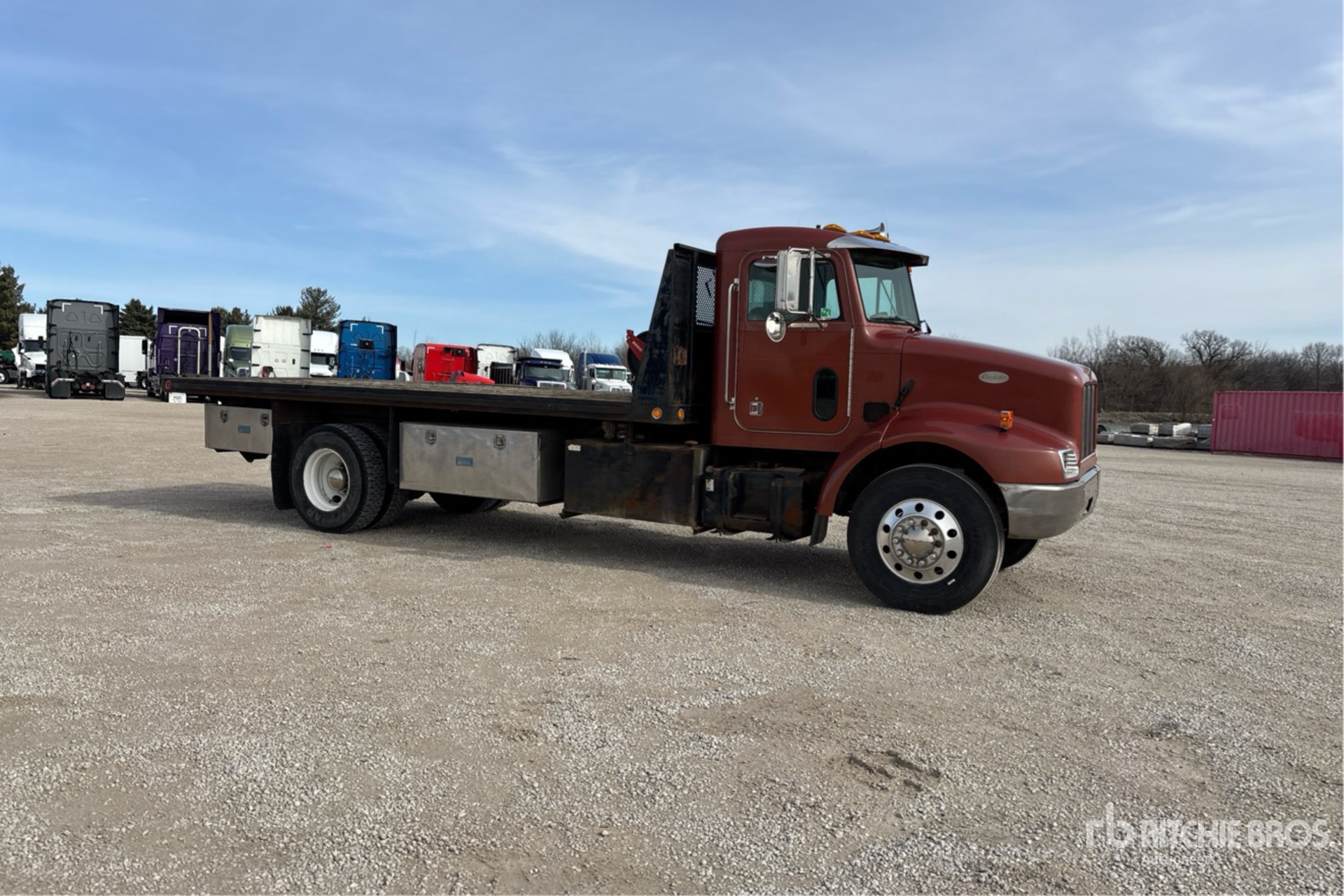 Located in Lane 9, Cat 3126B 6 Cylinder 7.2 L Diesel 205 hp Engine, 1999 US EPA Label, 9592 Engine hrs, Eaton Fuller Rt8709B 8-Speed Manual Transmission, 10000 lb Front Axle, 21000 lb Rears, Eaton Drive Axles, 3.90:1 Axle Ratio, 31000 lb GVWR, Aluminum Front Wheels, 11R22.5, Air Trac Air Ride Suspension, 220 in Wheelbase, 20 ft x 96 in Bed, Pintle Hitch