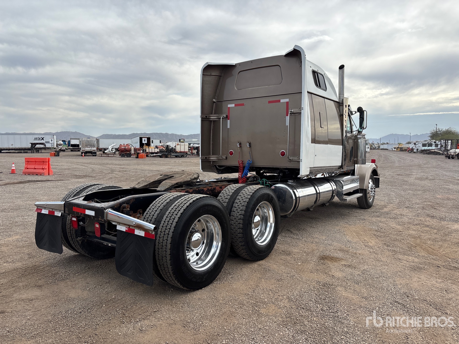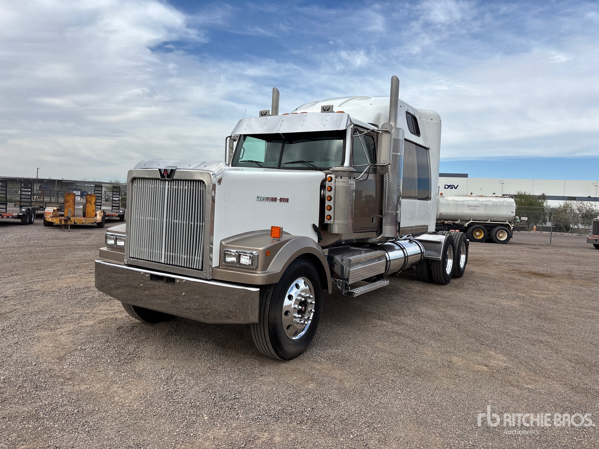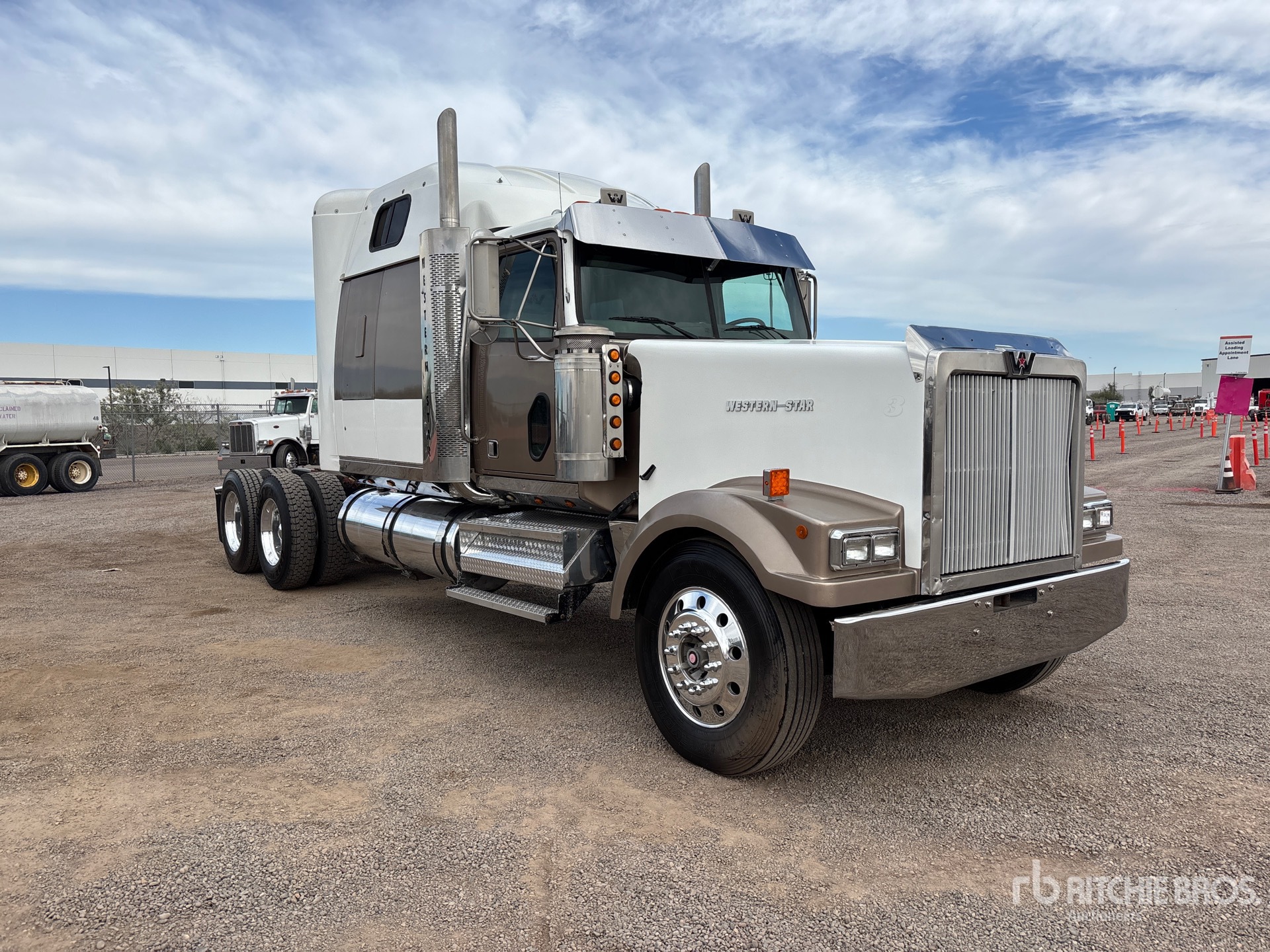 Located in Lane 12 Spot 24, Detroit Series 60 Engine, 2000 US EPA Label, Manual Transmission, Engine Brake, 82 in Mid Roof Sleeper Cab, 264 in Wheelbase, Air Suspension, Aluminum Wheels, 11R22.5, Air Sliding 5th Wheel, Dual Fuel Tanks