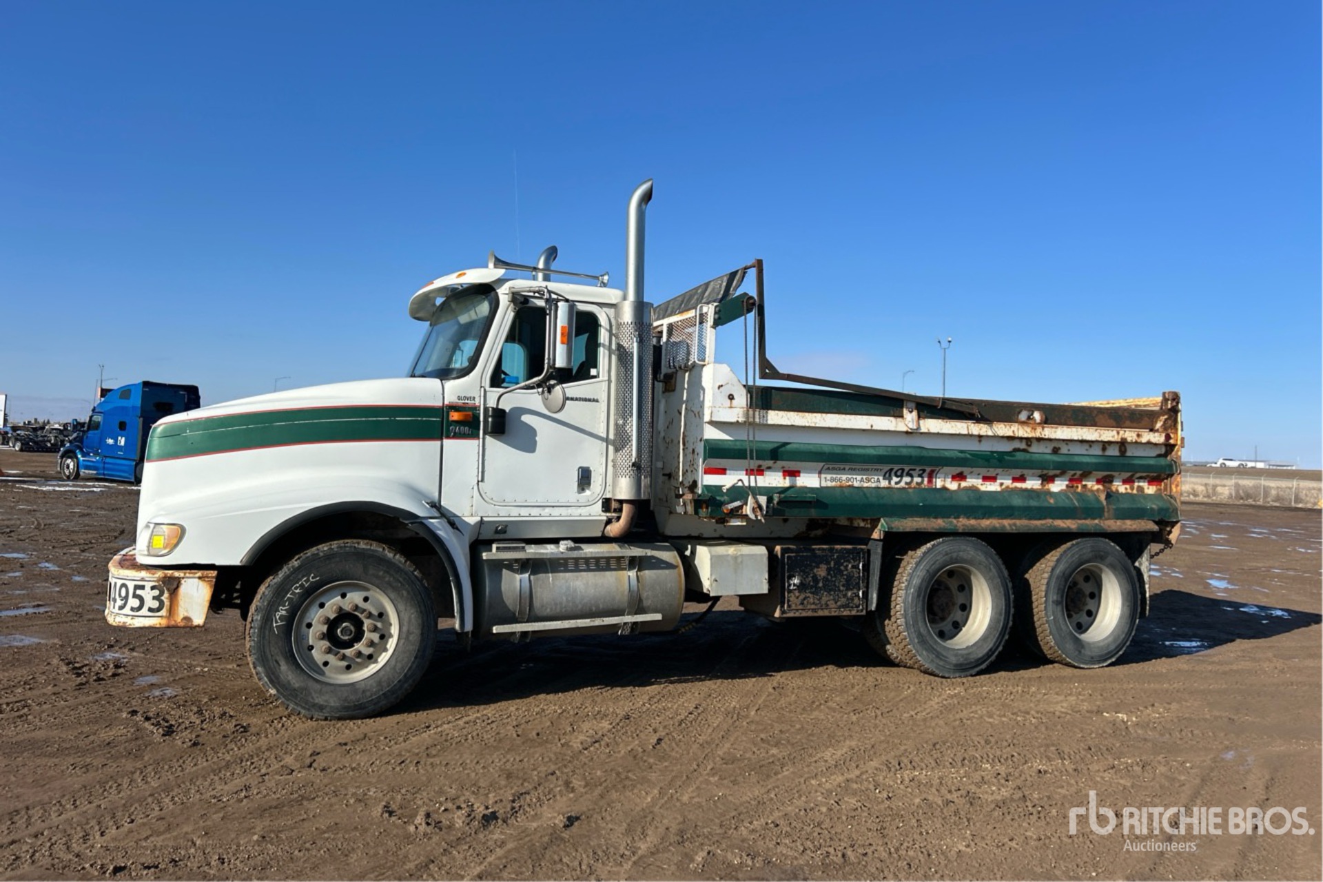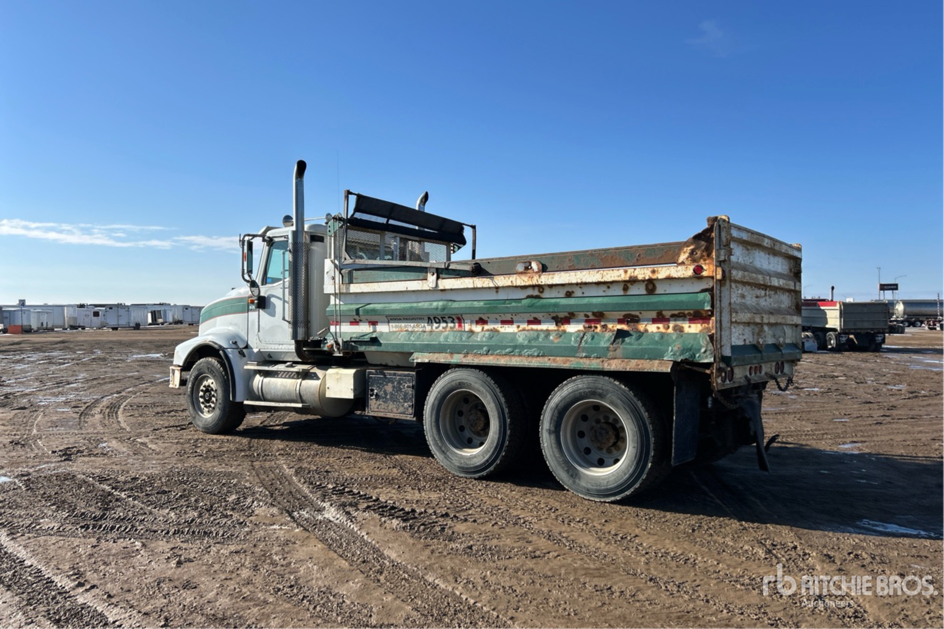 Cummins ISX475 6 Cylinder 15 L Diesel 475 hp Engine, 2001 US EPA Label, 24008 Engine hrs, Engine Brake, Eaton Fuller 18-Speed Transmission, Differential Lock, Air Ride Cab, Aluminum Wheels, 385/65R22.5 Front Tires, 11R24.5 Rear Tires, Hendrickson Air Ride Suspension, 205 in Wheelbase, PTO, 15 ft Long x 3 ft 5 in High Steel Body, Manual Roll Tarp, Rear Hydraulics, Pintle Hitch