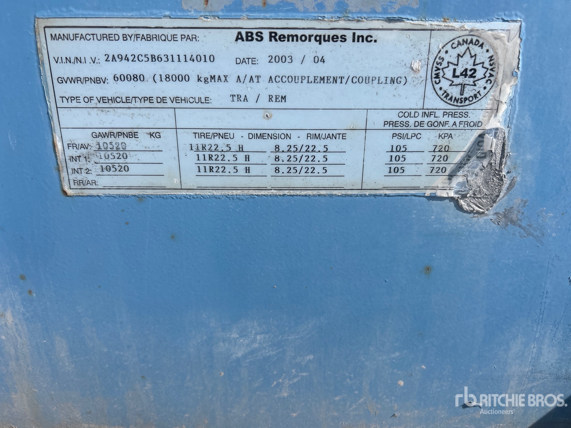 2003 ABS RC338 38 ft Tri/A ライブボトムトレーラー
