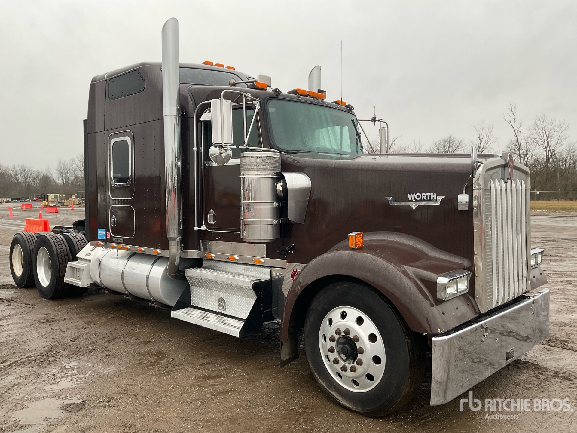 Cat Engine, Eaton Fuller FRO-16210C 10-Speed Manual, 12000 lb Front Axle, 36000 lb Rears, 48000 lb GVWR, Engine Brake, 52 in Mid Roof Sleeper Cab, Bunk Beds, 266 in Wheelbase, Air Suspension, Aluminum Front Wheels, 285/75R24.5, Air Sliding 5th Wheel, Dual Fuel Tanks