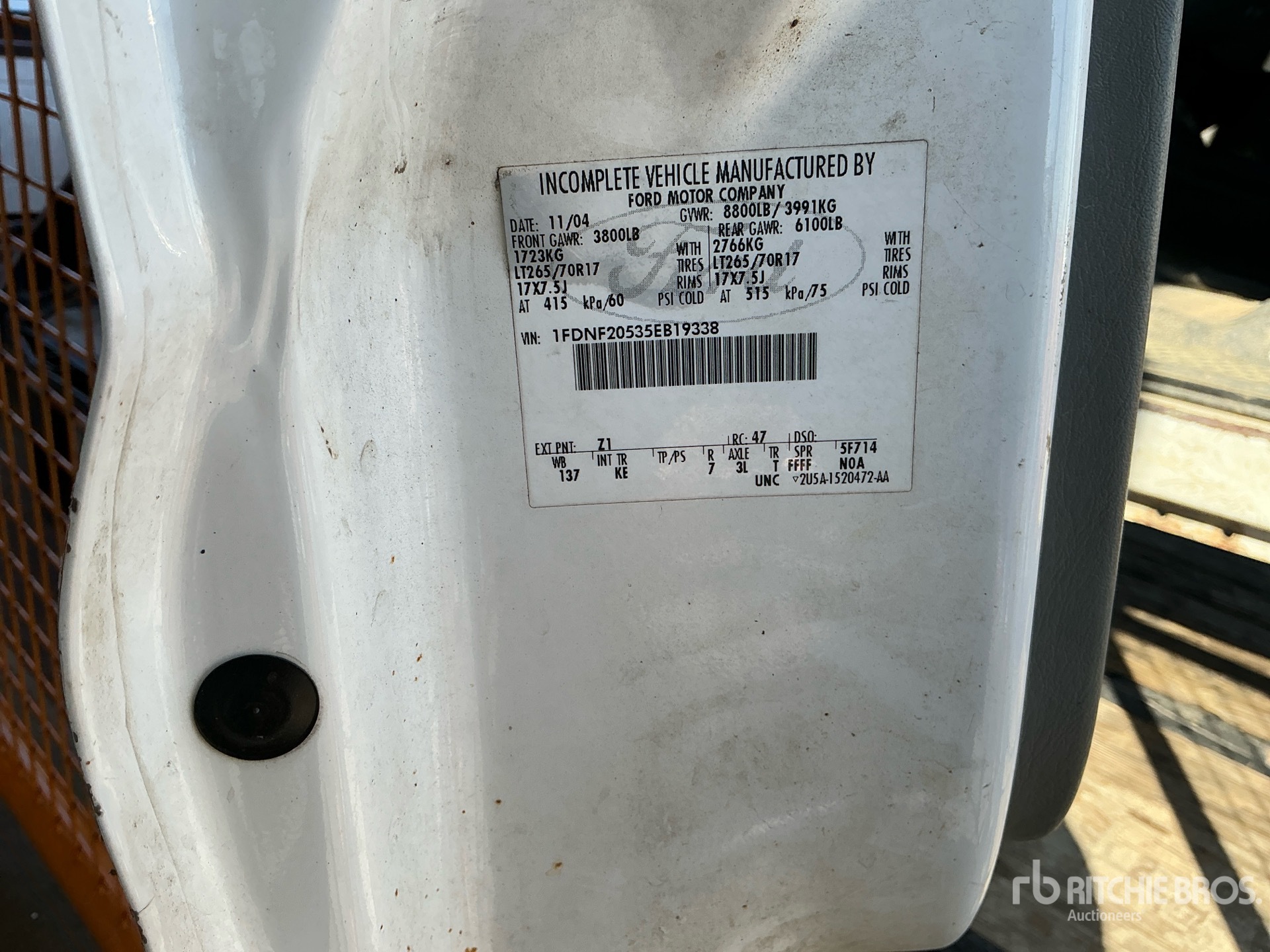 Located in Lane 8 Spot 16, Ford V8 5.4 L Gasoline Engine, 2005 US EPA Label, Automatic Transmission, 3800 lb Front Axle, 6100 lb Rears, 8800 lb GVWR, 265/70R17, Spring Suspension, 137 in Wheelbase, Omaha 8 ft Body