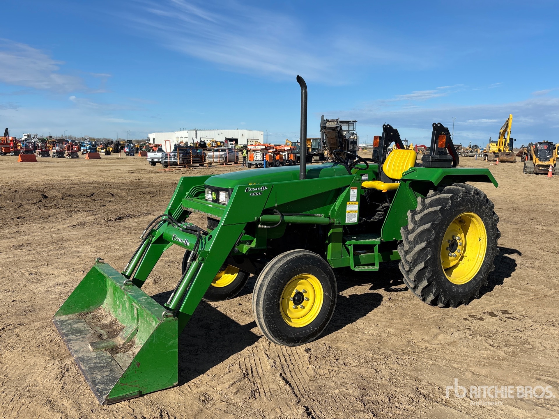 Air Ride Seat, Reverse Drive Mode, 9 Forward 3 Reverse, SyncShuttle, Forward/ Reverse Shuttle, 42 kW Engine, 2005 US EPA Label, Ezee-On 2060 Loader, Ezee-On 2060 72 in Bucket, 540 PTO, 3-Point Hitch, Drawbar, 7.50-16 Front Tires, 14.9x28 Rear Tires