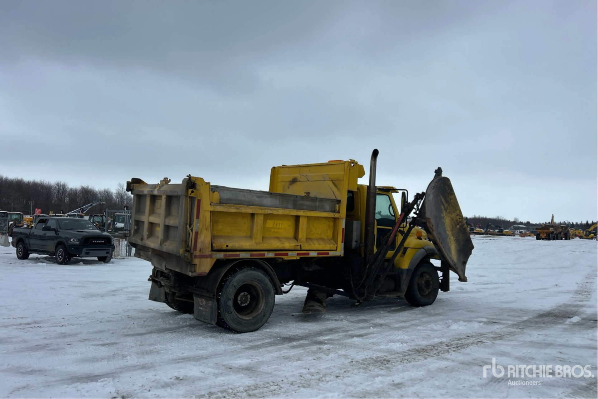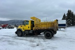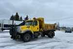 International DT466 Diesel Engine, 4838 Engine hrs, Allison Automatic Transmission, 16000 lb Front Axle, 20000 lb Rears, 36000 lb GVWR, 12R22.5 Front Tires, 11R22.5 Rear Tires, Dual Steering Boxes, Double Frame, Air Ride Suspension, 183 in Wheelbase, 11 ft Snow Wing, 11 ft Underbody Scraper, Tenco Steel Spreader, 1 Spinners, In-Cab Controls, 10 ft 10 in Long x 40 in High Steel Body, 2-Way Tailgate