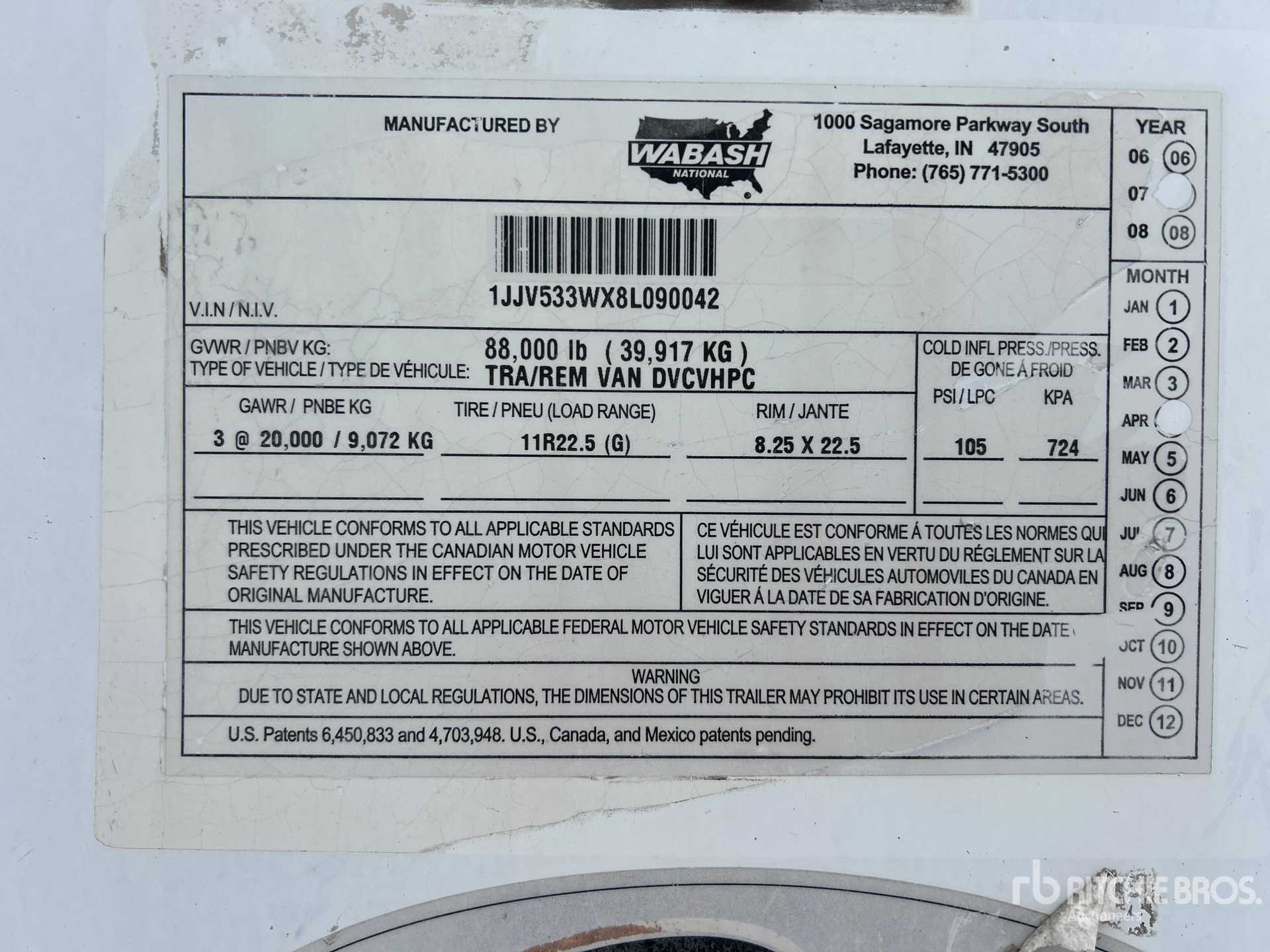 2008 Wabash 53 ft Tri/A バントレーラー