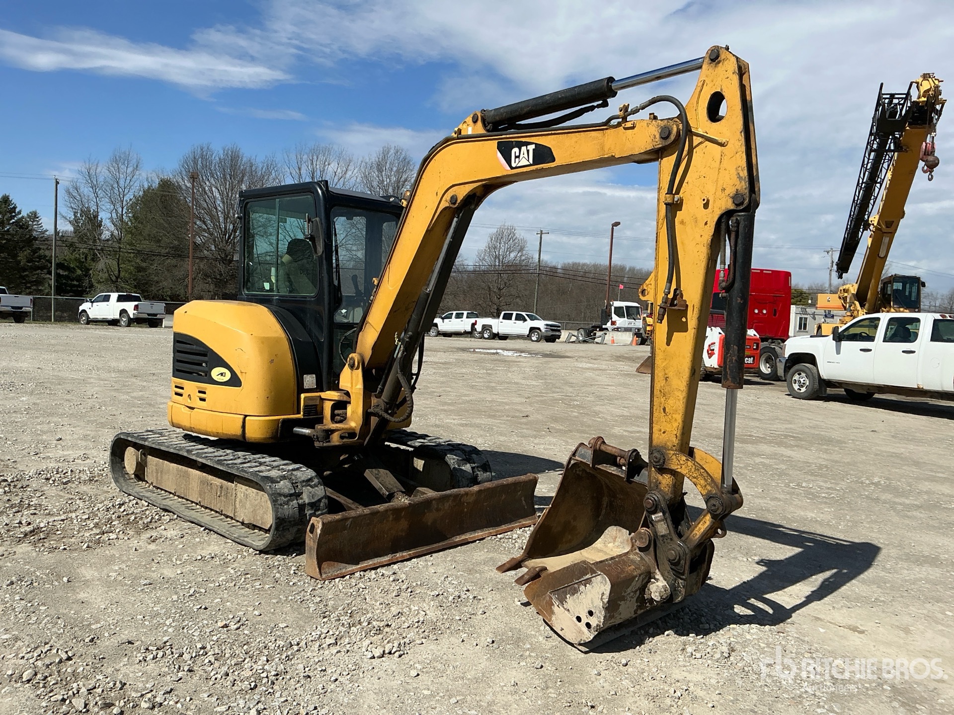 Enclosed Cab, Control Pattern Changer, Swing Boom, 6 ft 0 in Stick, Auxiliary Hydraulic Plumbing, Backfill Blade, 16 in Rubber Tracks, Manual Quick Coupler, 39 in Cleanup Bucket, Additional 22 in Digging Bucket
