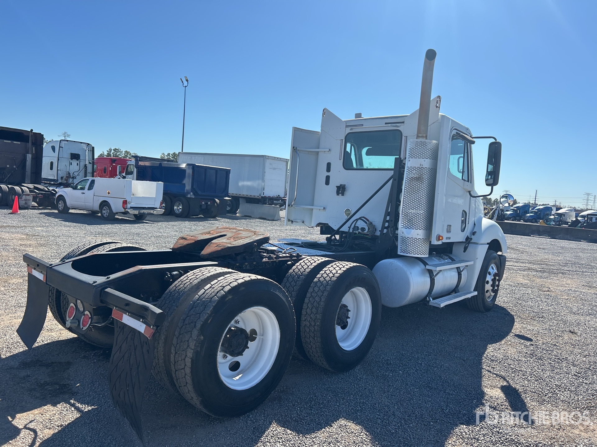 Located in Lane 31 Spot 24, Detroit Series 60 490 hp Engine, 2008 US EPA Label, Eaton Fuller FRO-15210B 10-Speed Manual Transmission 12000 lb Front Axle, 40000 lb Rears, 52000 lb GVWR, Engine Brake, 175 in Wheelbase, Air Suspension, Aluminum Front Wheels, 295/75R22.5 Front Tires, 275/80R22.5 Rear Tires, Air Sliding 5th Wheel, Dual Fuel Tanks