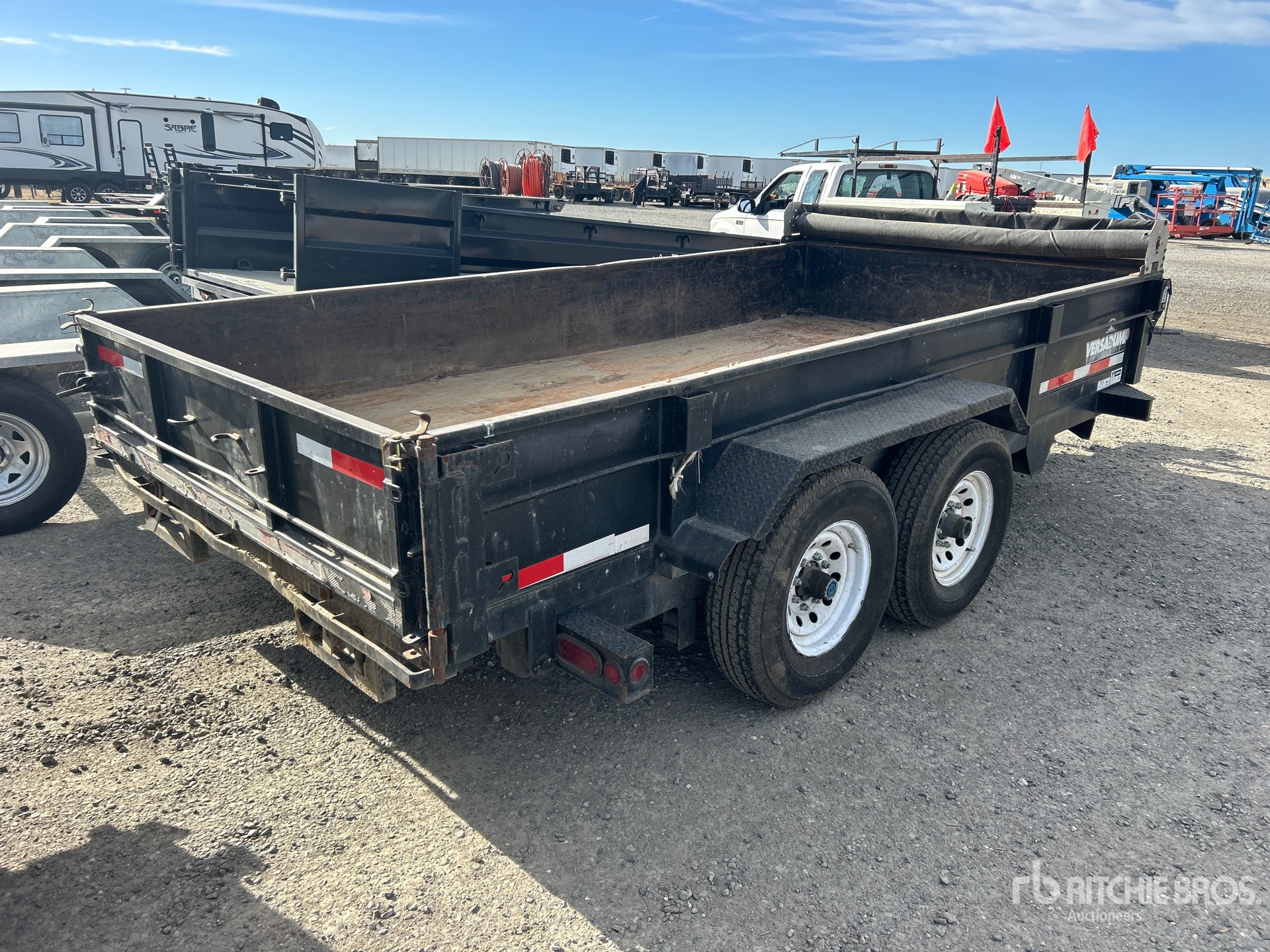 Lunette Ring Hitch, Spring Suspension, Electric Brakes, 14 ft Body, 18 in Side Walls, Steel Body, Manual Roll Tarp, 235/85R16 Tires, 15400 lb GVWR
