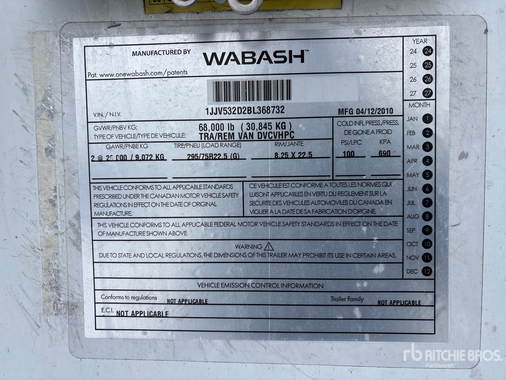 Air Ride Sliding Suspension, Side Skirts, Hardwood Floor, Swing Door, 295/75R22.5 Tires 68000 lb GVWR