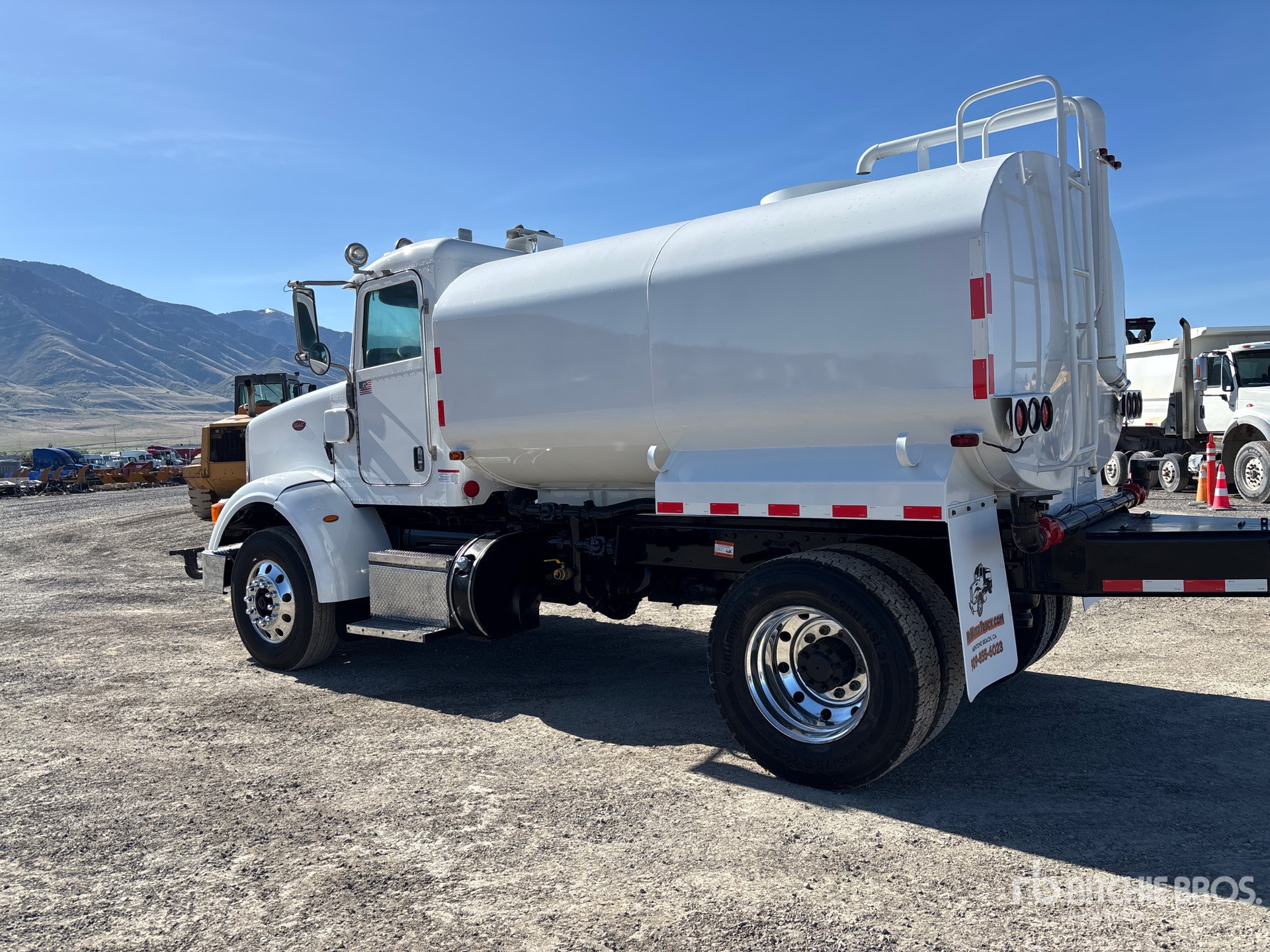 Paccar MX-13 6 Cylinder 12.9 L Diesel 380 hp Engine, 2012 US EPA Label, Requires Diesel Exhaust Fluid, Eaton Fuller 10-Speed Manual Transmission, Differential Lock, 12000 lb Front Axle, 23000 lb Rears, 33000 lb GVWR, Aluminum Wheels, 295/75R22.5 Front Tires, 295/75R22.5 Rear Tires, Spring Suspension, 168 in Wheelbase, PTO, 2000 gal Steel Tank, ATP PTO Driven Pump, 85 in, Spray Bar, Front Spray, Rear Spray, Side Spray