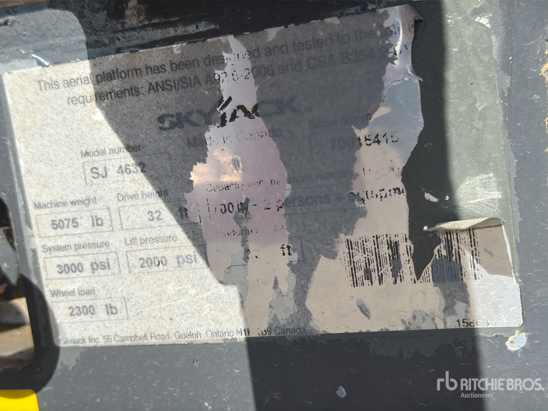 機械の詳細情報は範囲に制限があり、Ritchie Bros. Auctioneersは、ここに明記するもの以外の設備やコンポーメントの検査は行っていません。特に明記されていない限り、明示的または黙示的かにかかわらず、Ritchie Bros.は機械やそのコンポーネントに関する一切の責任を負わないものとします。機能性、快適性、あるいは関係官庁や規制機関が定める安全基準や要件に関する準拠性、特定目的への適合性、または商品性に関する表明や保証も含まれますが、これらに限るわけではありません。お客様には入札される前に必ず機械の検品を行うことをお勧めします。
