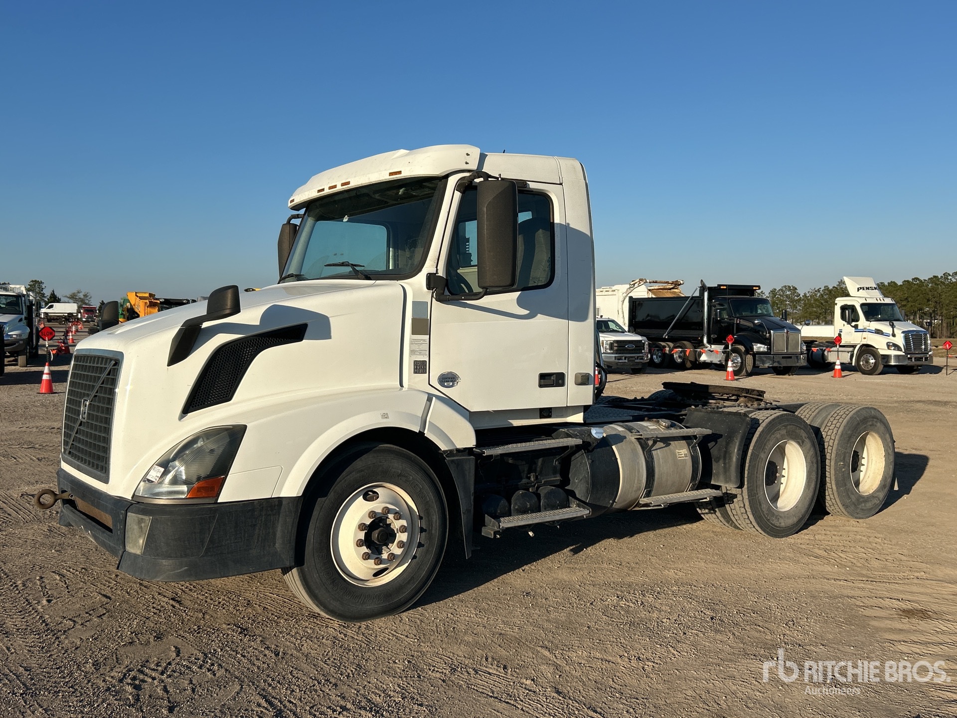 Volvo D13H455 12.8 L Diesel 455 hp Engine, 2012 US EPA Label, Requires Diesel Exhaust Fluid, 1977 Engine hrs, Engine Brake, Eaton Fuller FRO-16210C 10-Speed Manual Transmission, 12350 lb Front Axle, 40000 lb Rears, Meritor MT-40-14X Drive Axles, 3.55:1 Axle Ratio, 52350 lb GVWR, Air Ride Cab, 11R22.5, Air Ride Suspension, 180 in Wheelbase, Air Sliding 5th Wheel