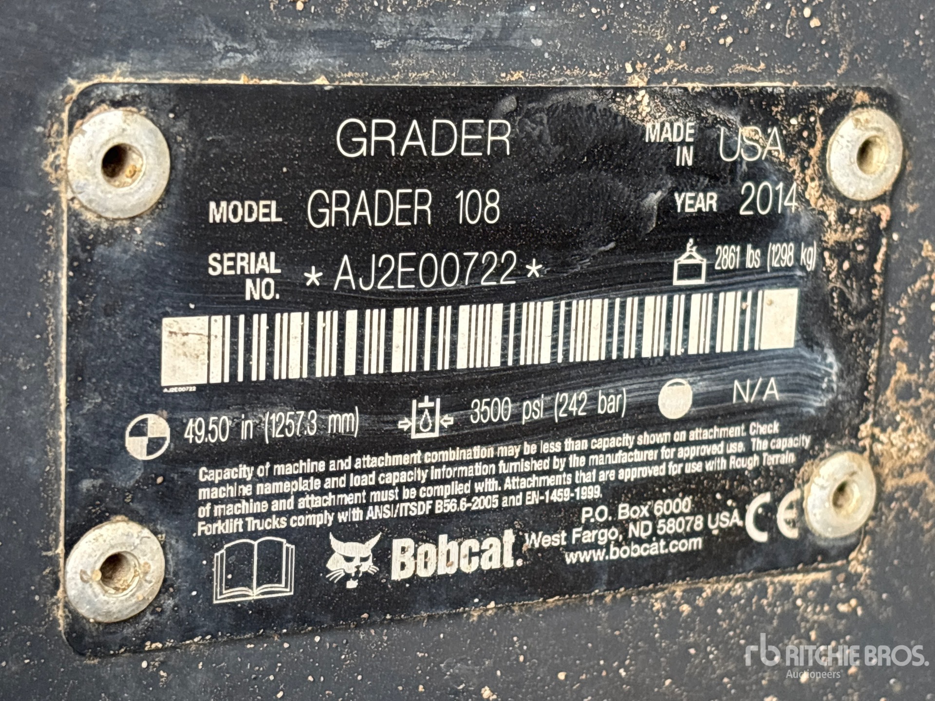 機械の詳細情報は範囲に制限があり、Ritchie Bros. Auctioneersは、ここに明記するもの以外の設備やコンポーメントの検査は行っていません。特に明記されていない限り、明示的または黙示的かにかかわらず、Ritchie Bros.は機械やそのコンポーネントに関する一切の責任を負わないものとします。機能性、快適性、あるいは関係官庁や規制機関が定める安全基準や要件に関する準拠性、特定目的への適合性、または商品性に関する表明や保証も含まれますが、これらに限るわけではありません。お客様には入札される前に必ず機械の検品を行うことをお勧めします。