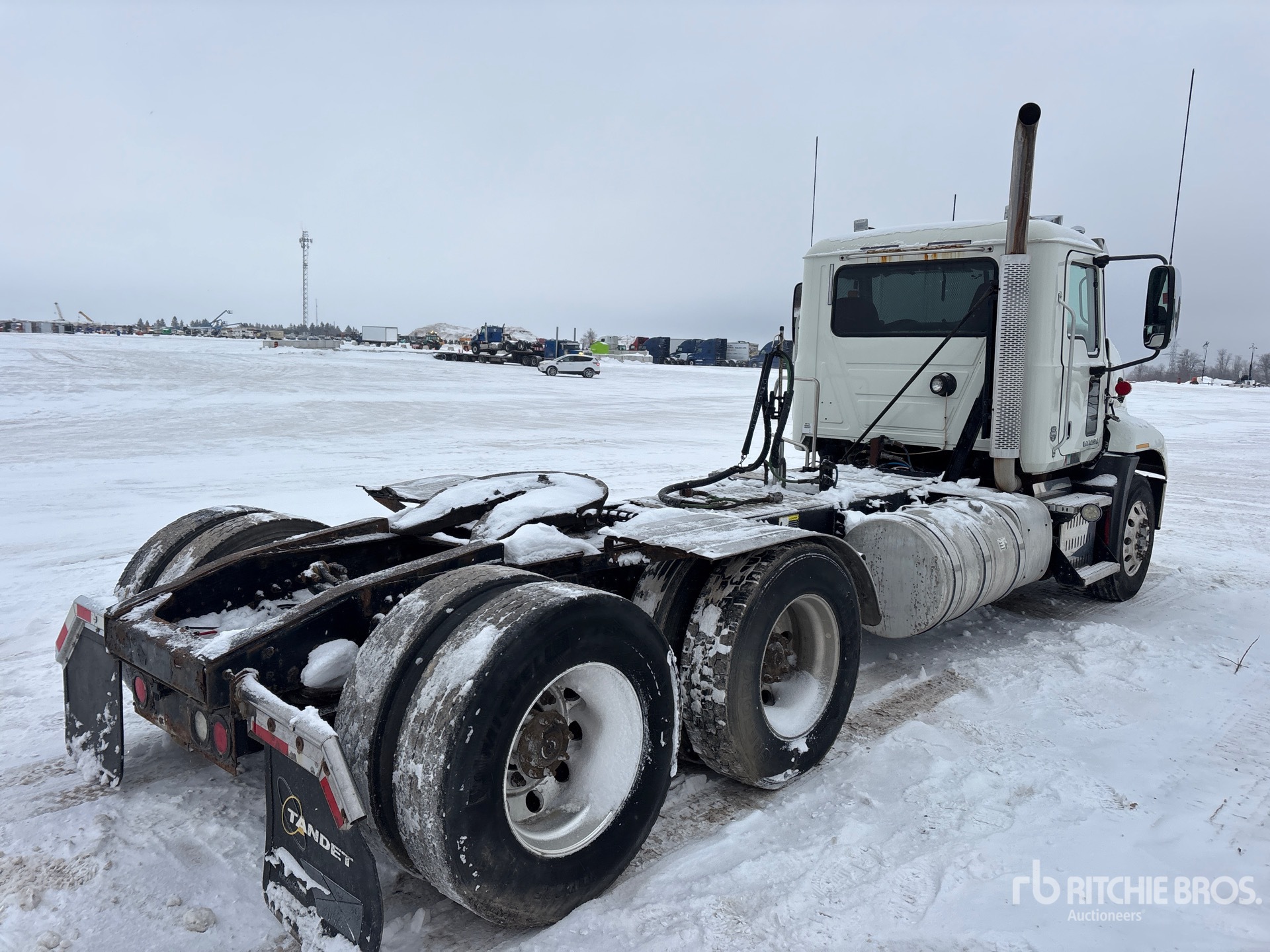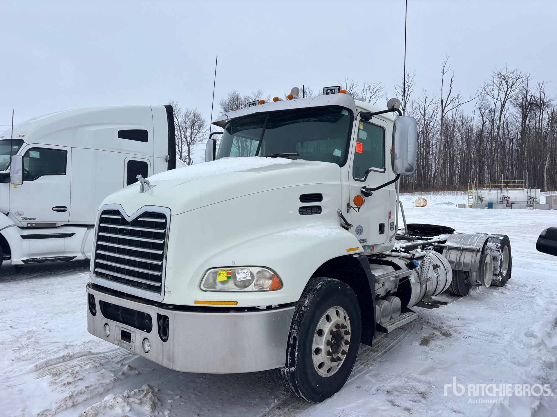 Located in Lane 21 Spot 11, Mack MP8 505 hp Engine, 2013 US EPA Label, 14487 Engine hrs, Mack mDrive 12-Speed Automated Transmission 6600 kg Front Axle, 20800 kg Rears, 27400 kg GVWR, Engine Brake, Differential Lock, 210 in Wheelbase, Air Suspension, Aluminum Wheels, 11R22.5, Air Sliding 5th Wheel, Dual Fuel Tanks