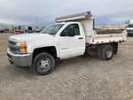 GM V8 6 L Gasoline Engine, 2015 US EPA Label, Automatic Transmission, 5600 lb Front Axle, 9750 lb Rears, 13200 lb GVWR, 235/80R17 Front Tires, 235/80R17 Rear Tires, Spring Suspension, 138 in Wheelbase, Knapheide 9 ft 6 in Long x 1 ft High Steel Body, Manual Roll Tarp, Hitch receiver, Equipment-from-Sellenriek-Construction