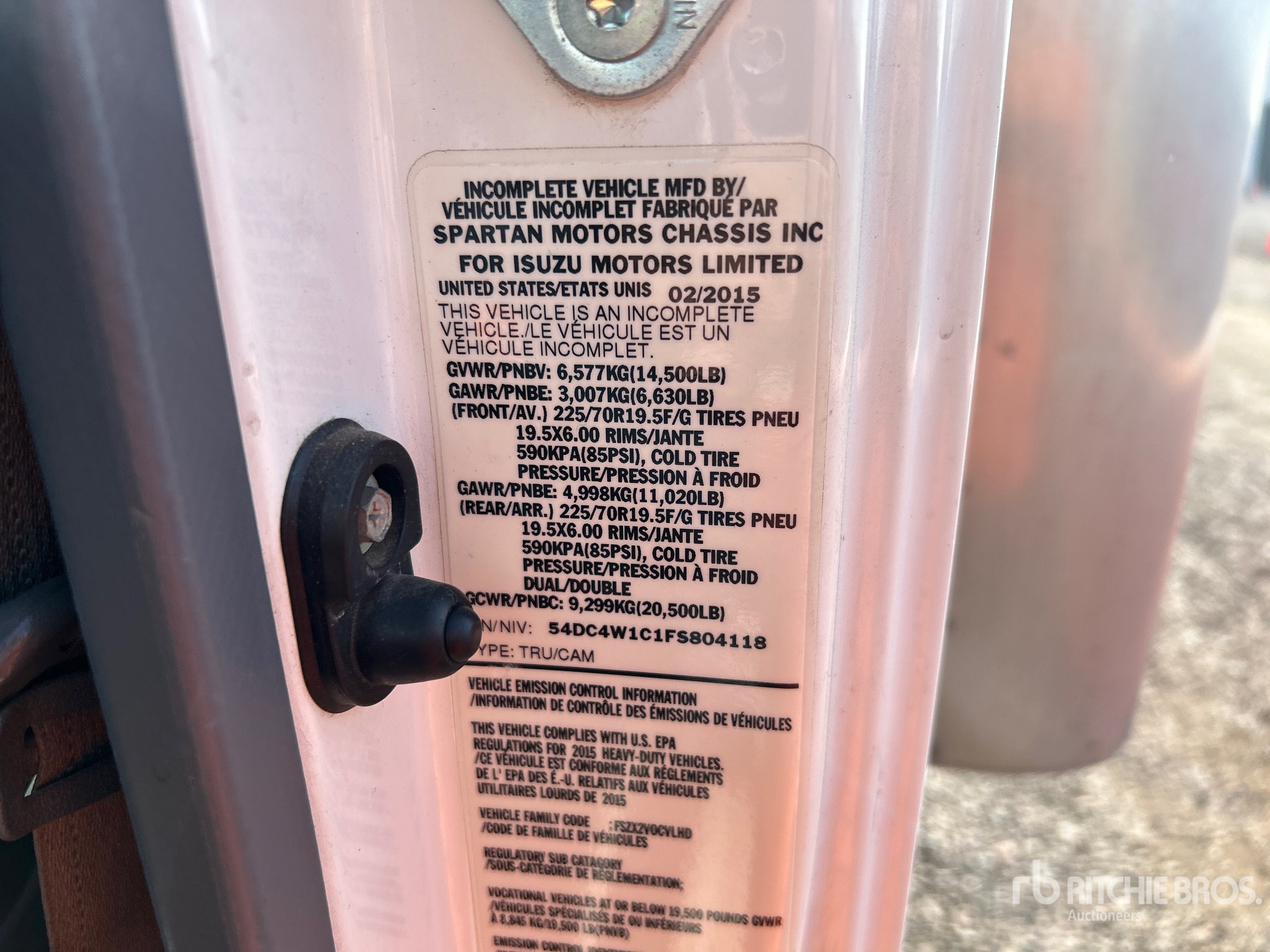 機械の詳細情報は範囲に制限があり、Ritchie Bros. Auctioneersは、ここに明記するもの以外の設備やコンポーメントの検査は行っていません。特に明記されていない限り、明示的または黙示的かにかかわらず、Ritchie Bros.は機械やそのコンポーネントに関する一切の責任を負わないものとします。機能性、快適性、あるいは関係官庁や規制機関が定める安全基準や要件に関する準拠性、特定目的への適合性、または商品性に関する表明や保証も含まれますが、これらに限るわけではありません。お客様には入札される前に必ず機械の検品を行うことをお勧めします。