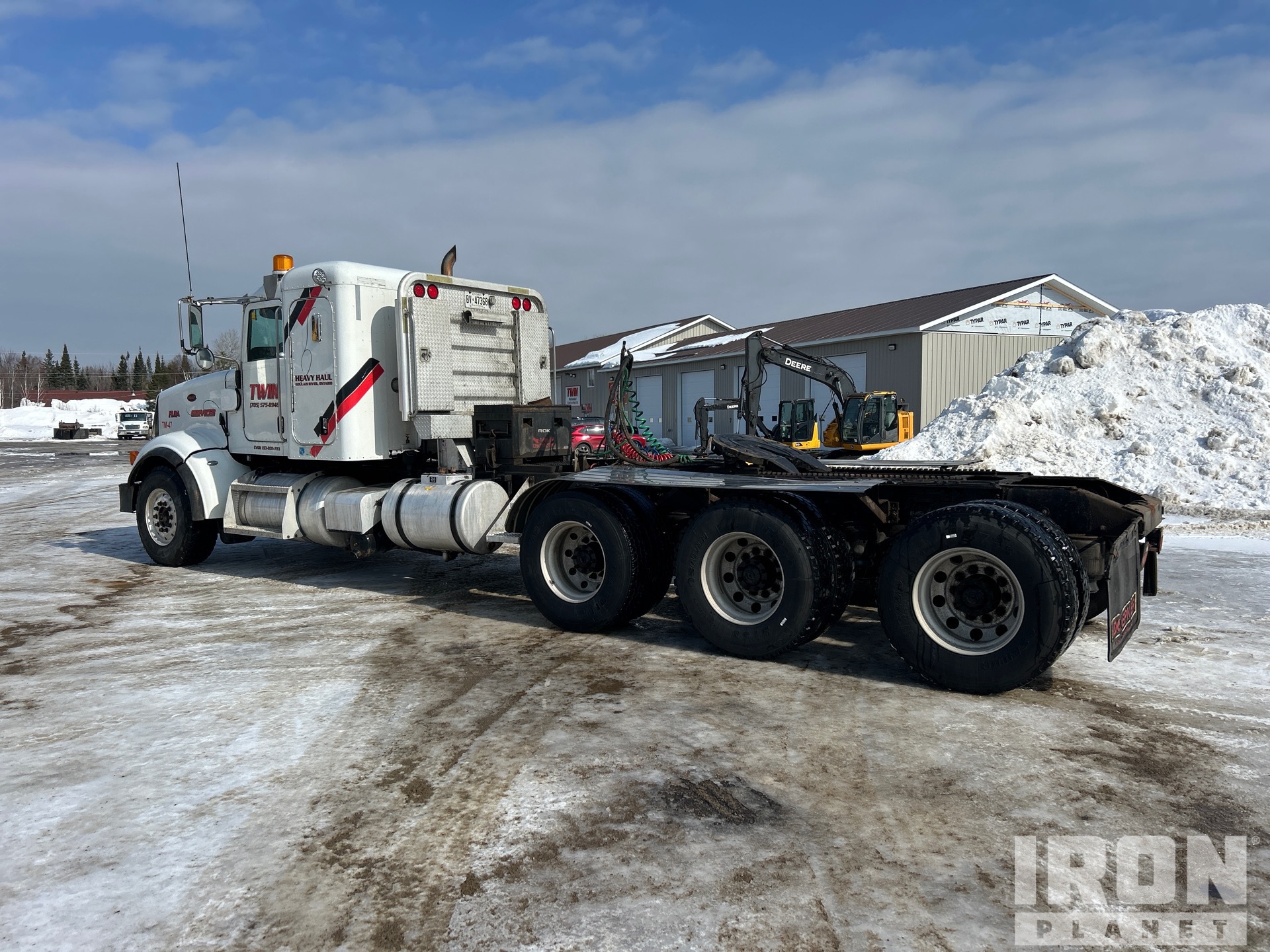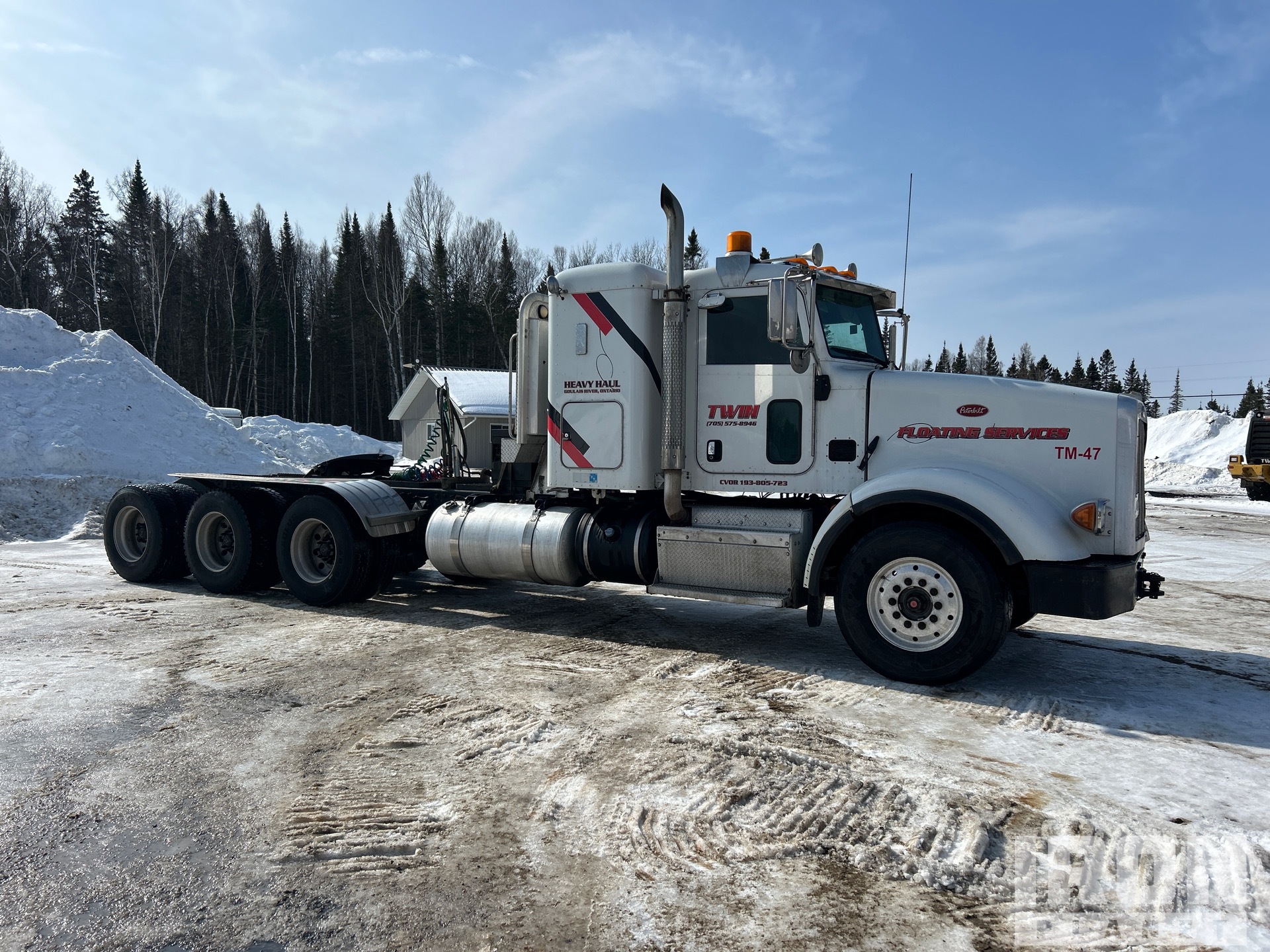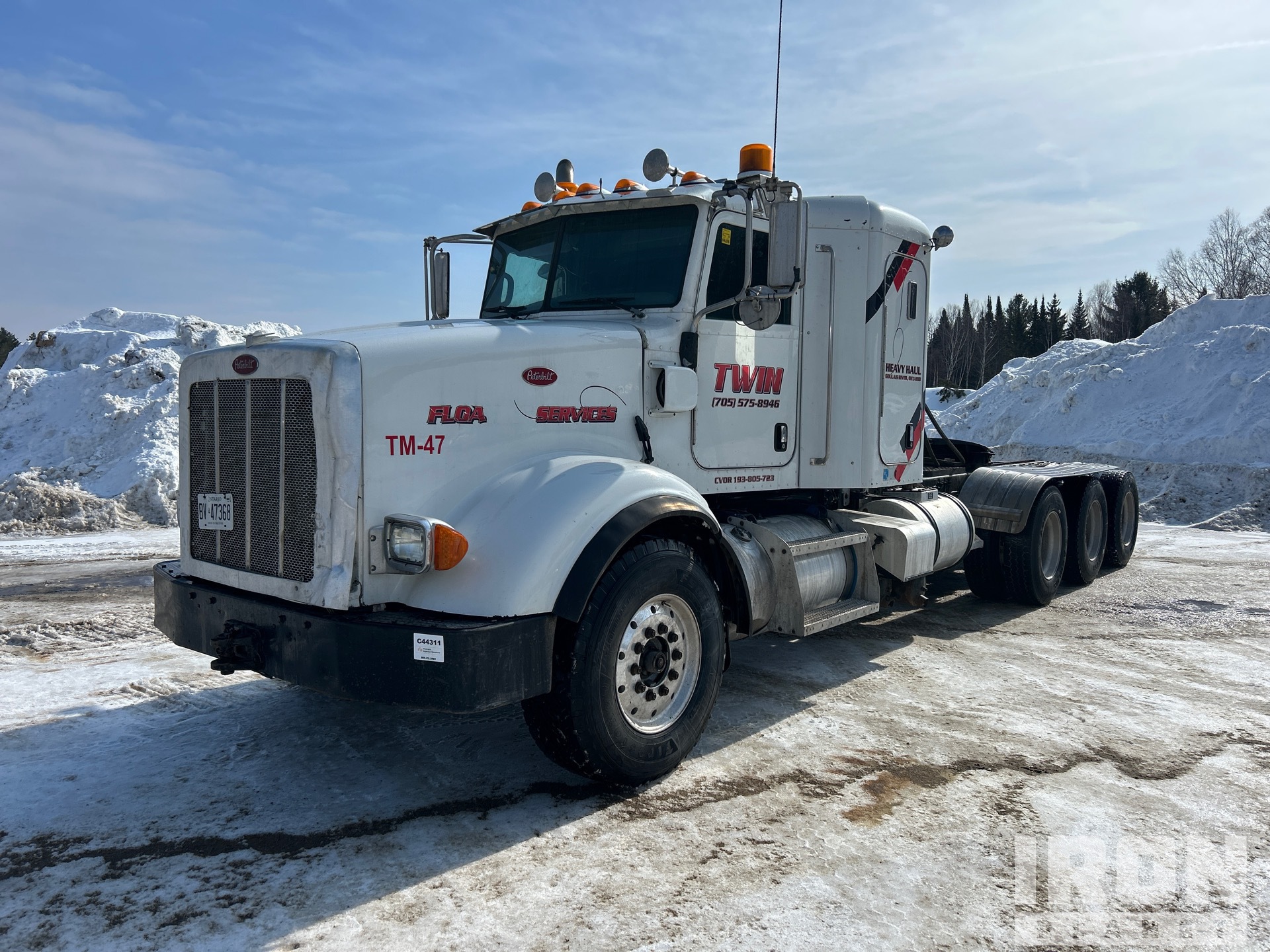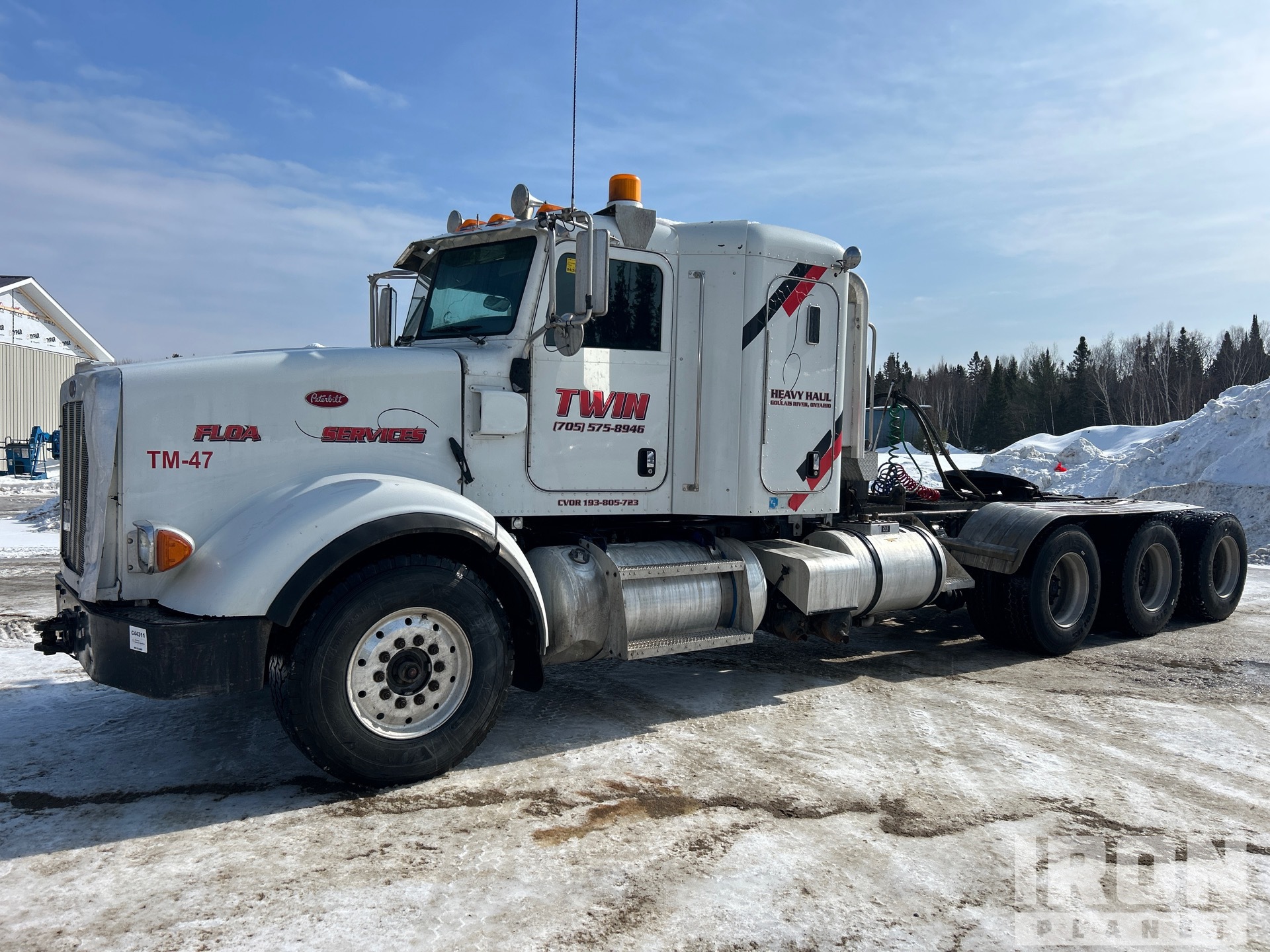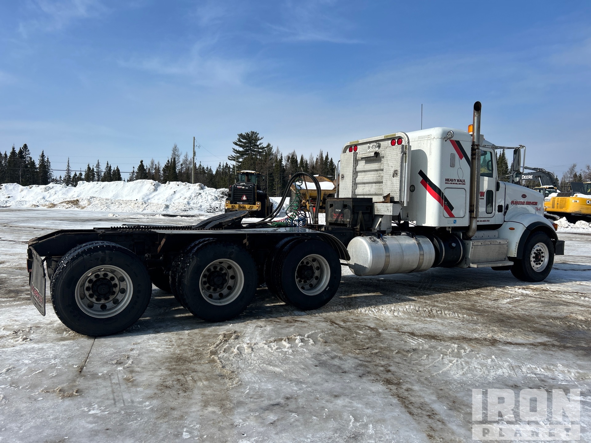 Cummins ISX15 485 hp Engine, Engine Coolant Heater, 2014 US EPA Label, 13635 Engine hrs, Eaton Fuller 18-Speed Manual Transmission, 14601 lb Front Axle, 60999 lb Rears, 75600 lb GVWR, Engine Brake, Double Differential Locks, Flat Top Sleeper Cab, 268 in Wheelbase, Air Suspension, Aluminum Outer Wheels, 385/65R22.5 Front Tires, 11R22.5 Rear Tires, Wet Kit, Air Sliding 5th Wheel, Dual Fuel Tanks, Headache Rack