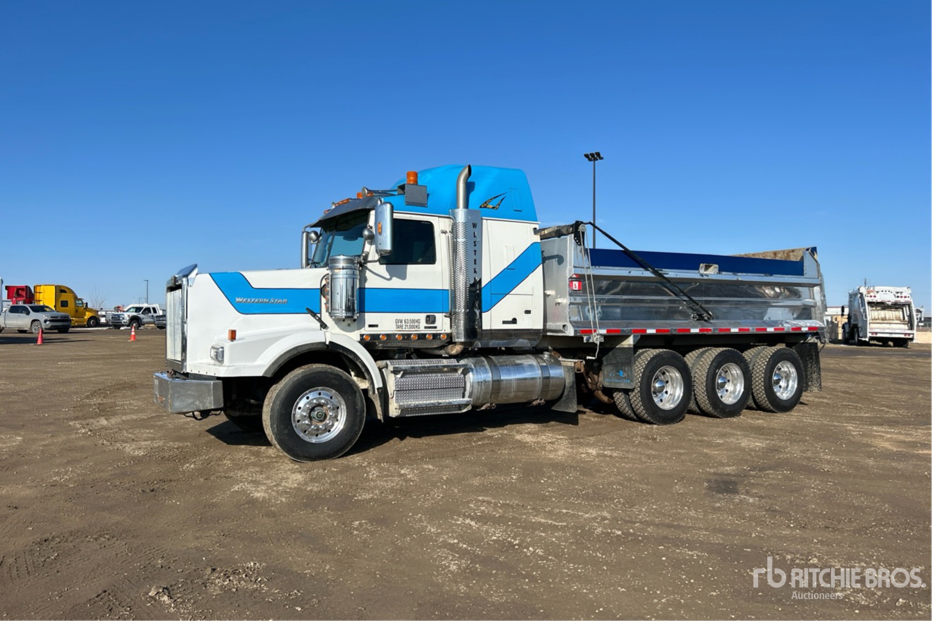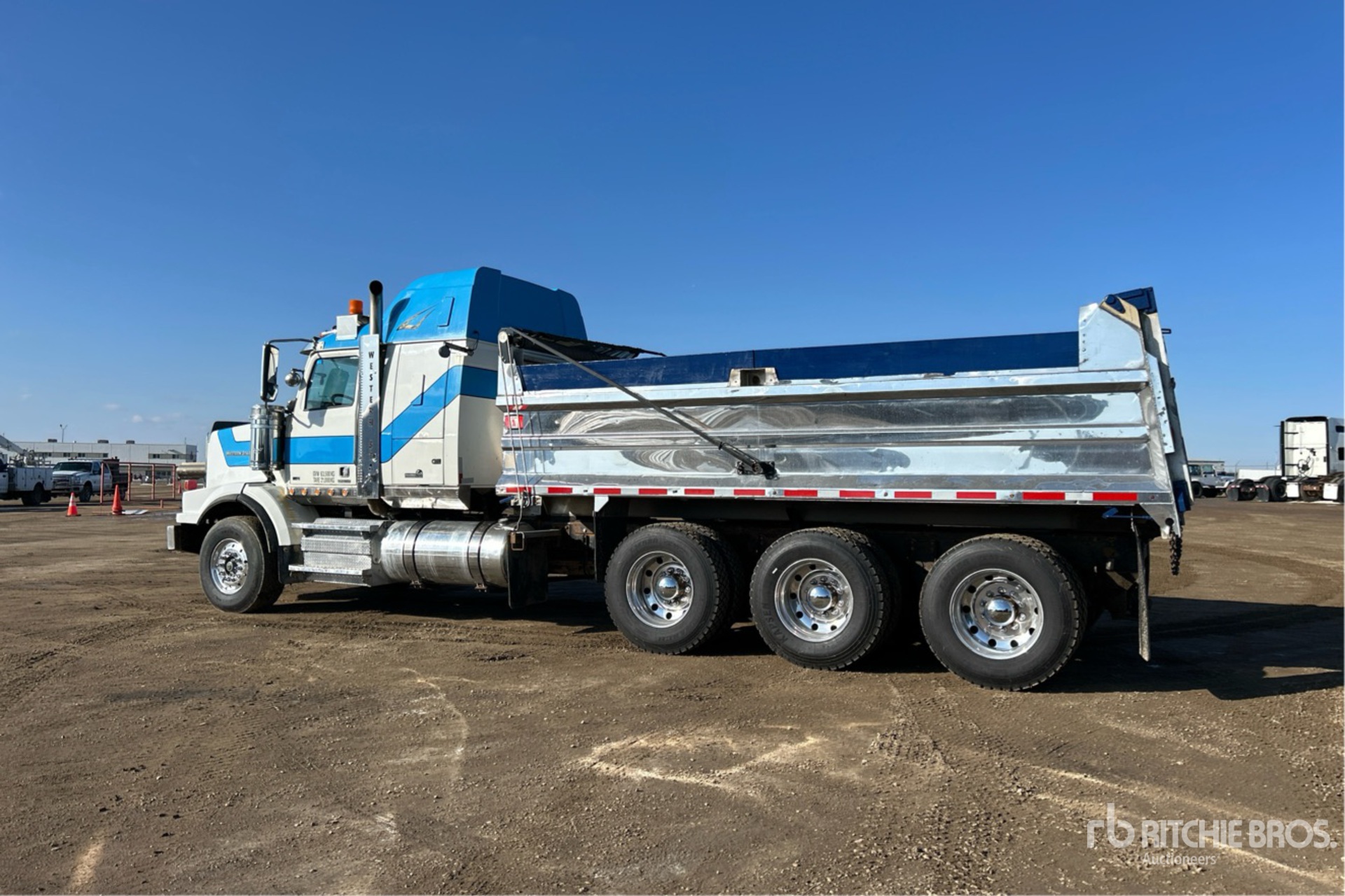 Located in Lane 46 Spot 33, Detroit DD16 6 Cylinder 15.6 L Diesel 560 hp Engine, Engine Coolant Heater, 17071 Engine hrs, Exhaust Brake, Eaton Fuller RTLO-18918B 18-Speed Manual Transmission, Triple Differential Locks, 16000 lb Front Axle, 57000 lb Rears, Meritor RZ-69-166 R-SRS Drive Axles, 4.30:1 Axle Ratio, 73000 lb GVWR, Air Ride Cab, 48 in Mid Roof Sleeper Cab, Aluminum Wheels, 385/65R22.5 Front Tires, 11R24.5 Rear Tires, Neway Air Ride Suspension, 260 in Wheelbase, PTO, Trojan 18 ft 5 in Long x 3 ft 1 in High Aluminium Body, Manual Roll Tarp, Rear Hydraulics, Pintle Hitch