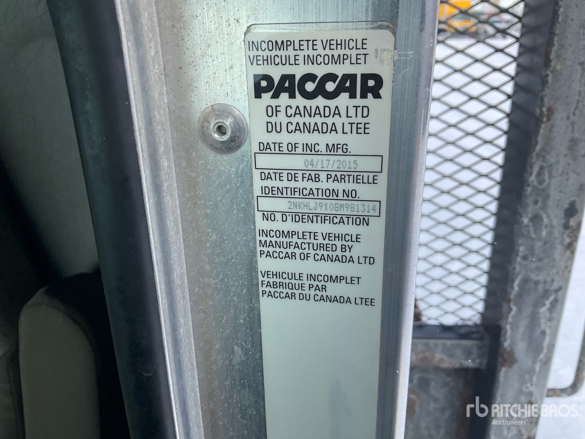Located in Lane 14 Spot 18, Paccar PX-9 6 Cylinder 8.9 L Diesel 350 hp Engine, 2015 US EPA Label, CARB Compliant, 3697 Engine hrs, Engine Brake, Eaton Fuller FRO11210C 10-Speed Manual Transmission, Differential Lock, 7258 kg Front Axle, 18144 kg Rears, 4.88:1 Axle Ratio, 25402 kg GVWR, Aluminum Front Wheels, 315/80R22.5 Front Tires, 11R22.5 Rear Tires, Dual Steering Boxes, Air Ride Suspension, 282 in Wheelbase, PTO, 25 ft x 101 in Bed, Forklift Mount Kit, 2015 Cleasby FRB-6-36 Conveyor