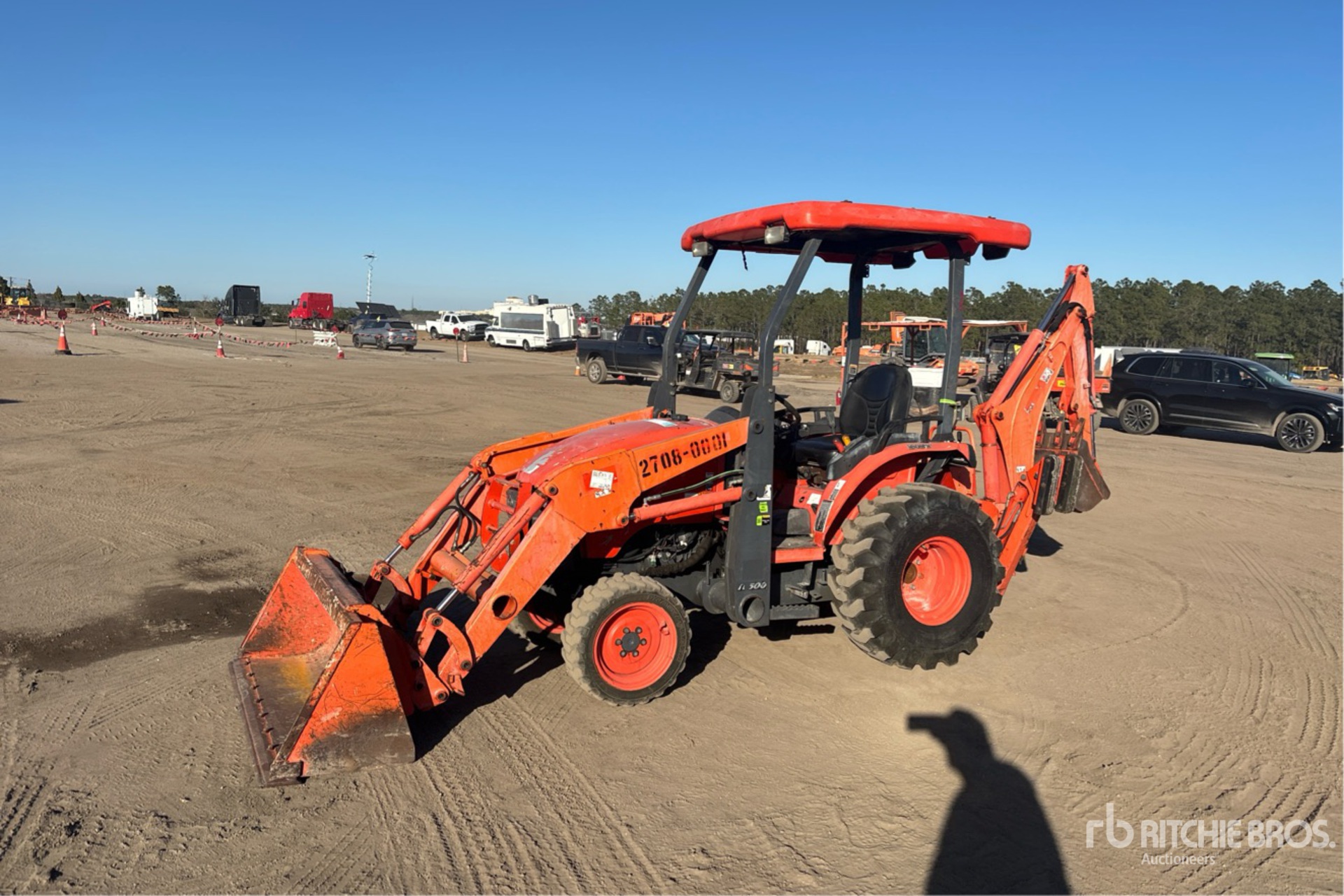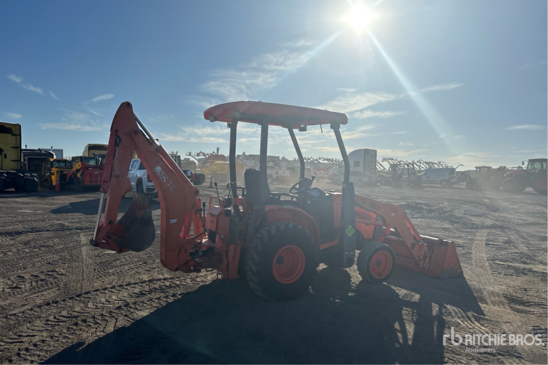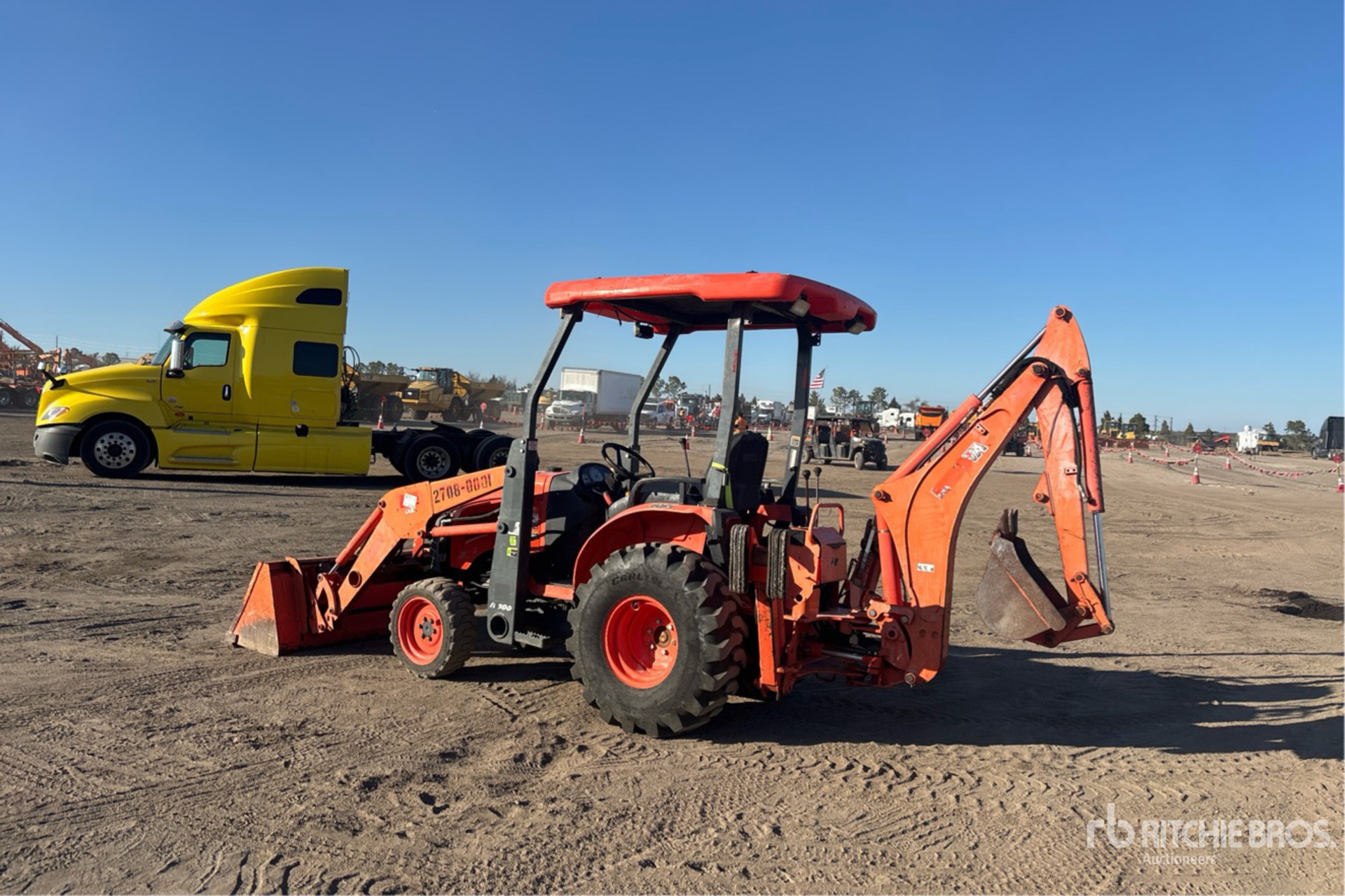 Canopy, Differential Lock, Hydrostatic Drive, Kubota Loader w/Joystick, Quick Coupler, 60 in Bucket, Suspended Front Axle, Loader Mounting Frame, HID Lights, 540 PTO, Kubota Backhoe Attachment With 18 in Bucket, 32x8.50-50 Front Tires, 12.4-16 Rear Tires
