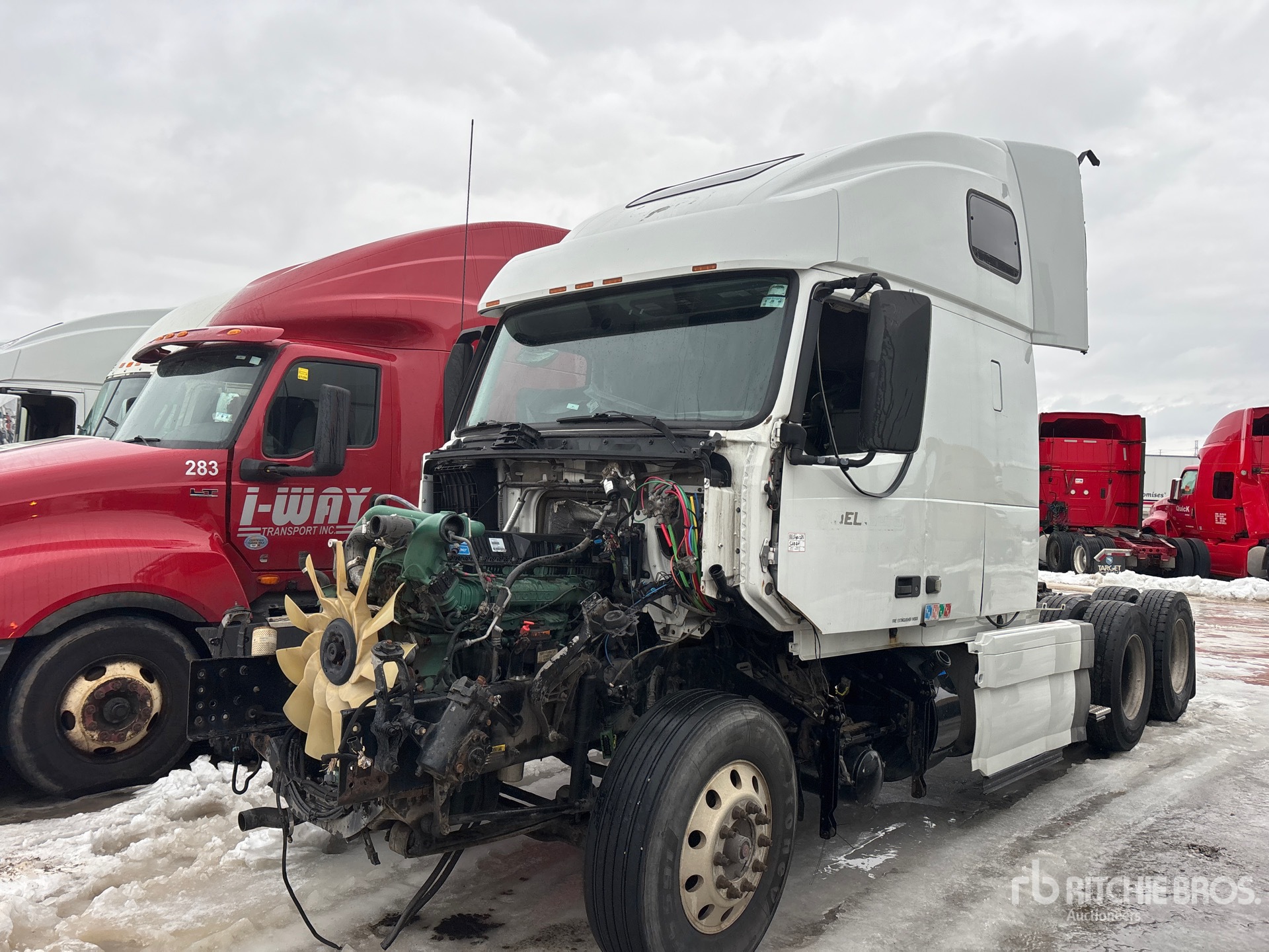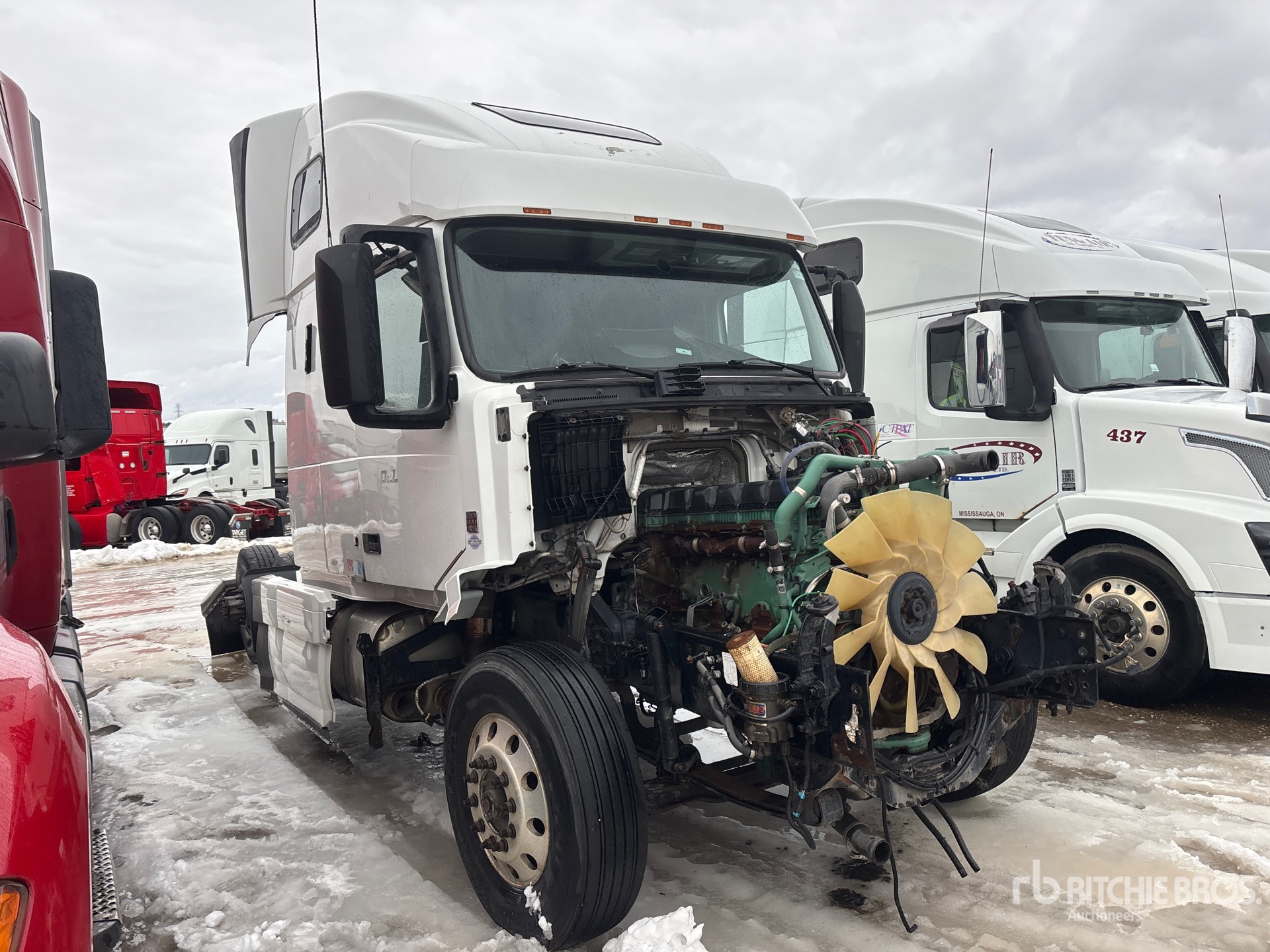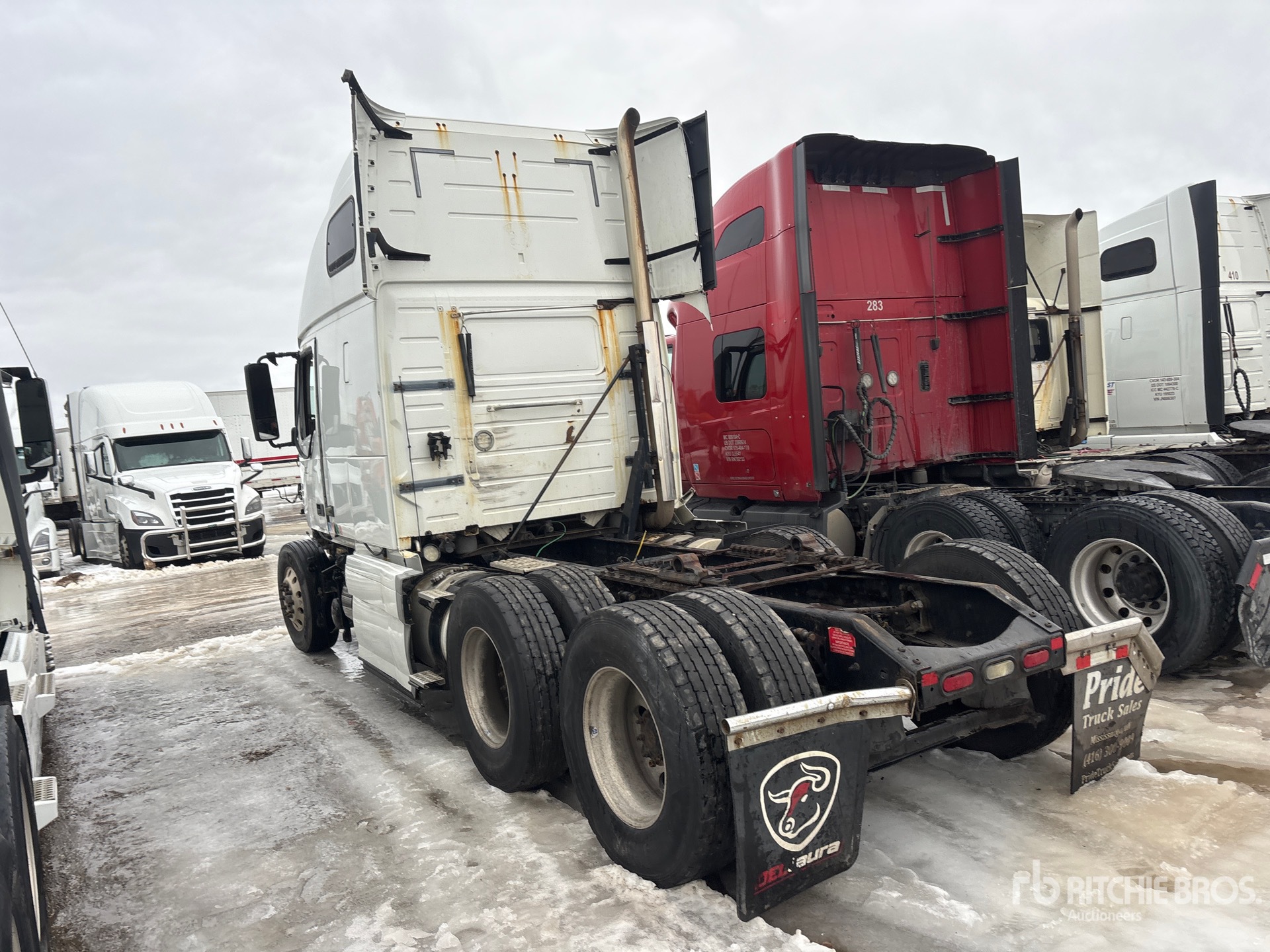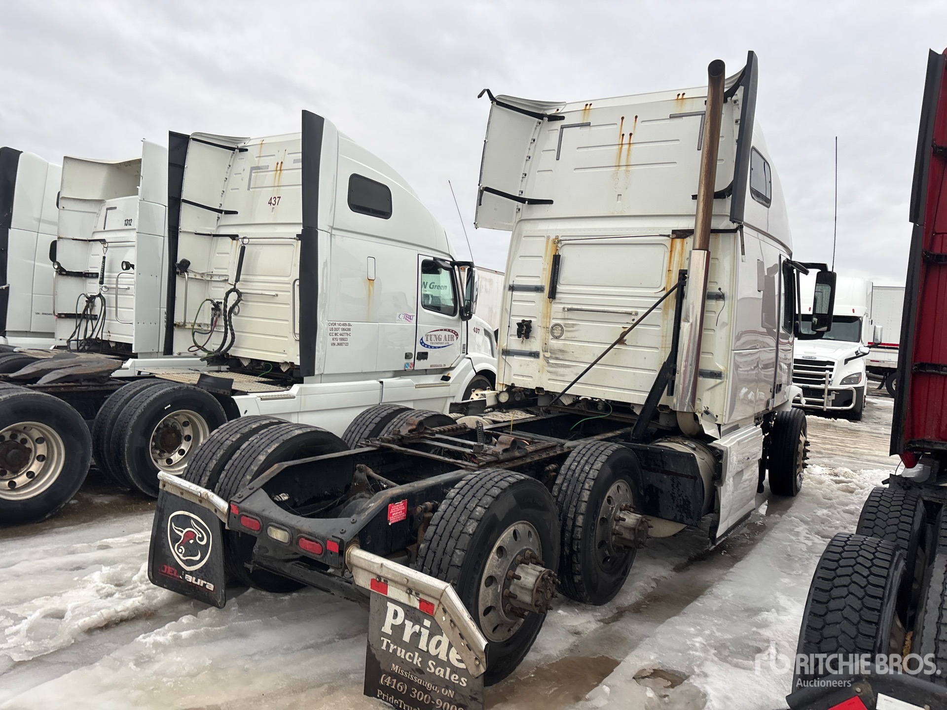 Located in Lane 21 Spot 100, Volvo D13J 425 hp Engine, 2015 US EPA Label, Engine Brake, 70 in High Rise Sleeper Cab, Bunk Beds, 222 in Wheelbase, Air Suspension, Aluminum Wheels, 11R22.5, Air Sliding 5th Wheel, Dual Fuel Tanks