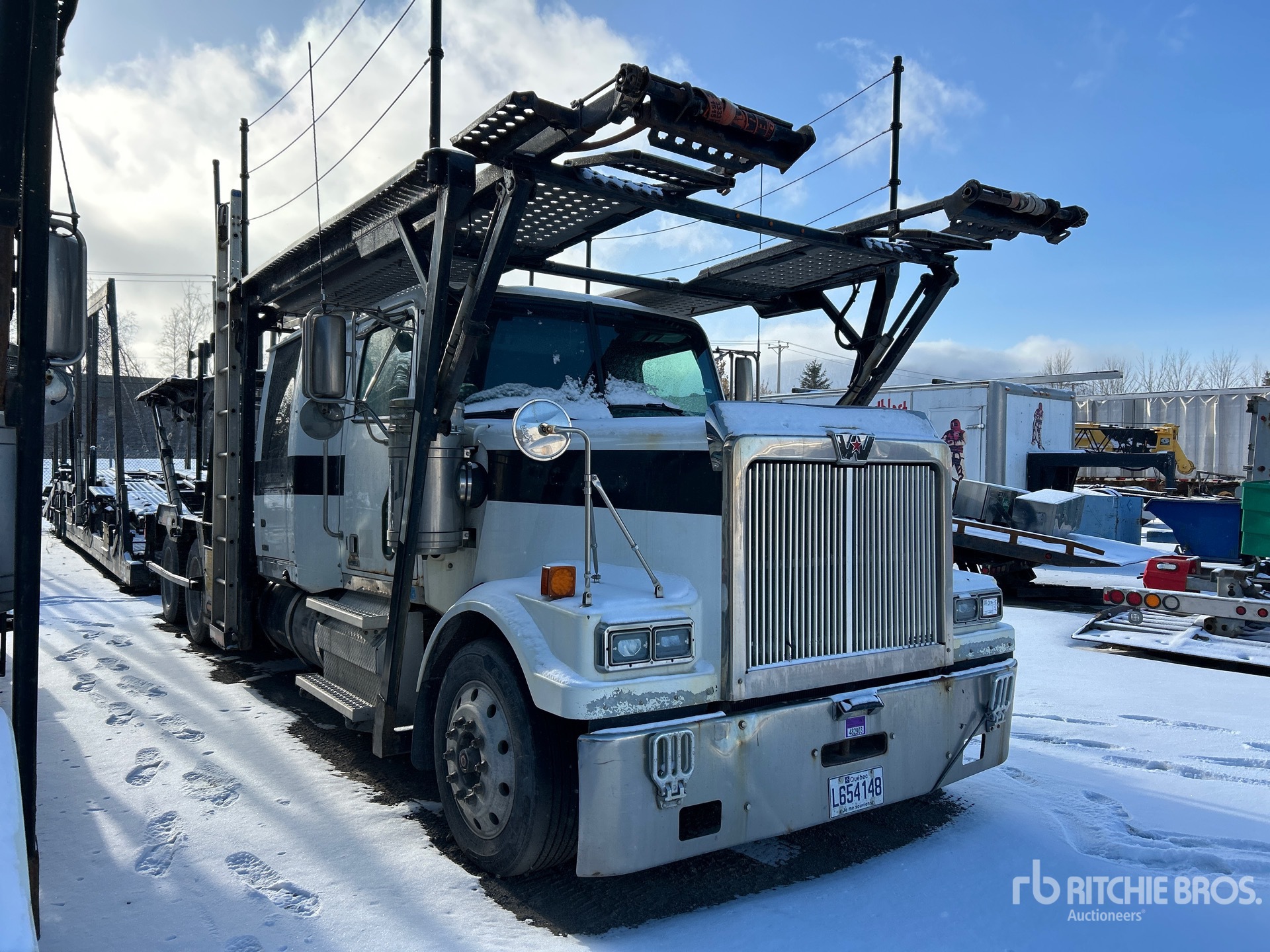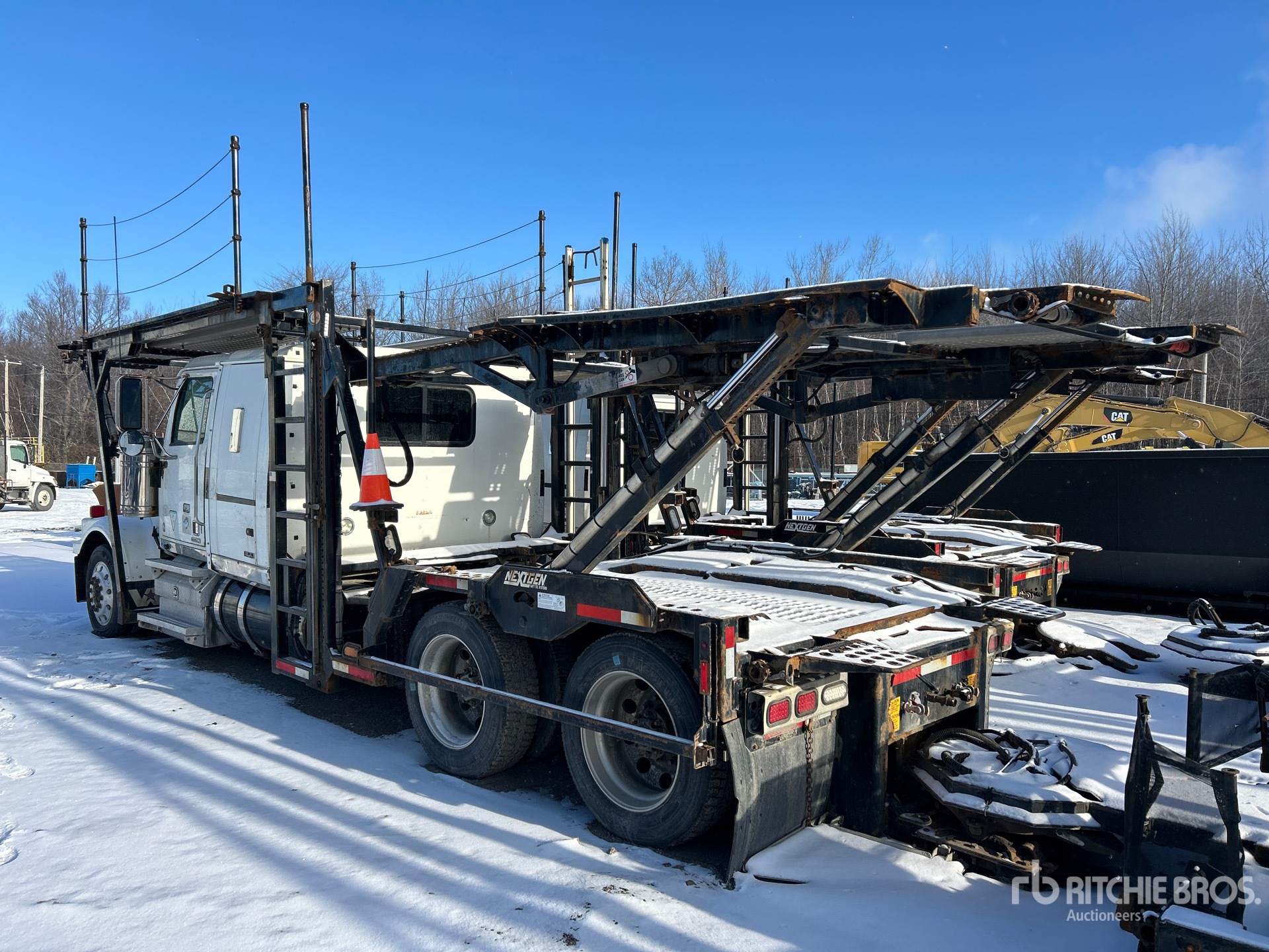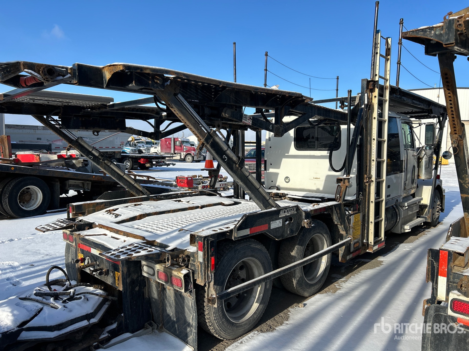 Detroit DD13 6 Cylinder 12.8 L Diesel 470 hp Engine, Engine Brake, Eaton Fuller FO-16E313A-MHP ULT Automatic Transmission, Differential Lock, 14600 lb Front Axle, 40000 lb Rears, 3.08:1 Axle Ratio, Air Ride Cab, 48 in Flat Top Sleeper Cab, Aluminum Outer Wheels, 295/60R22.5 Front Tires, 255/70R22.5 Rear Tires, Airliner Air Ride Suspension, 244 in Wheelbase, 3 Vehicle Capacity, Hydraulic Lift, Soft Tie Downs