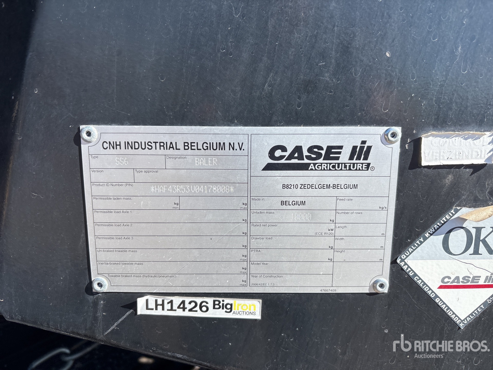 機械の詳細情報は範囲に制限があり、Ritchie Bros. Auctioneersは、ここに明記するもの以外の設備やコンポーメントの検査は行っていません。特に明記されていない限り、明示的または黙示的かにかかわらず、Ritchie Bros.は機械やそのコンポーネントに関する一切の責任を負わないものとします。機能性、快適性、あるいは関係官庁や規制機関が定める安全基準や要件に関する準拠性、特定目的への適合性、または商品性に関する表明や保証も含まれますが、これらに限るわけではありません。お客様には入札される前に必ず機械の検品を行うことをお勧めします。