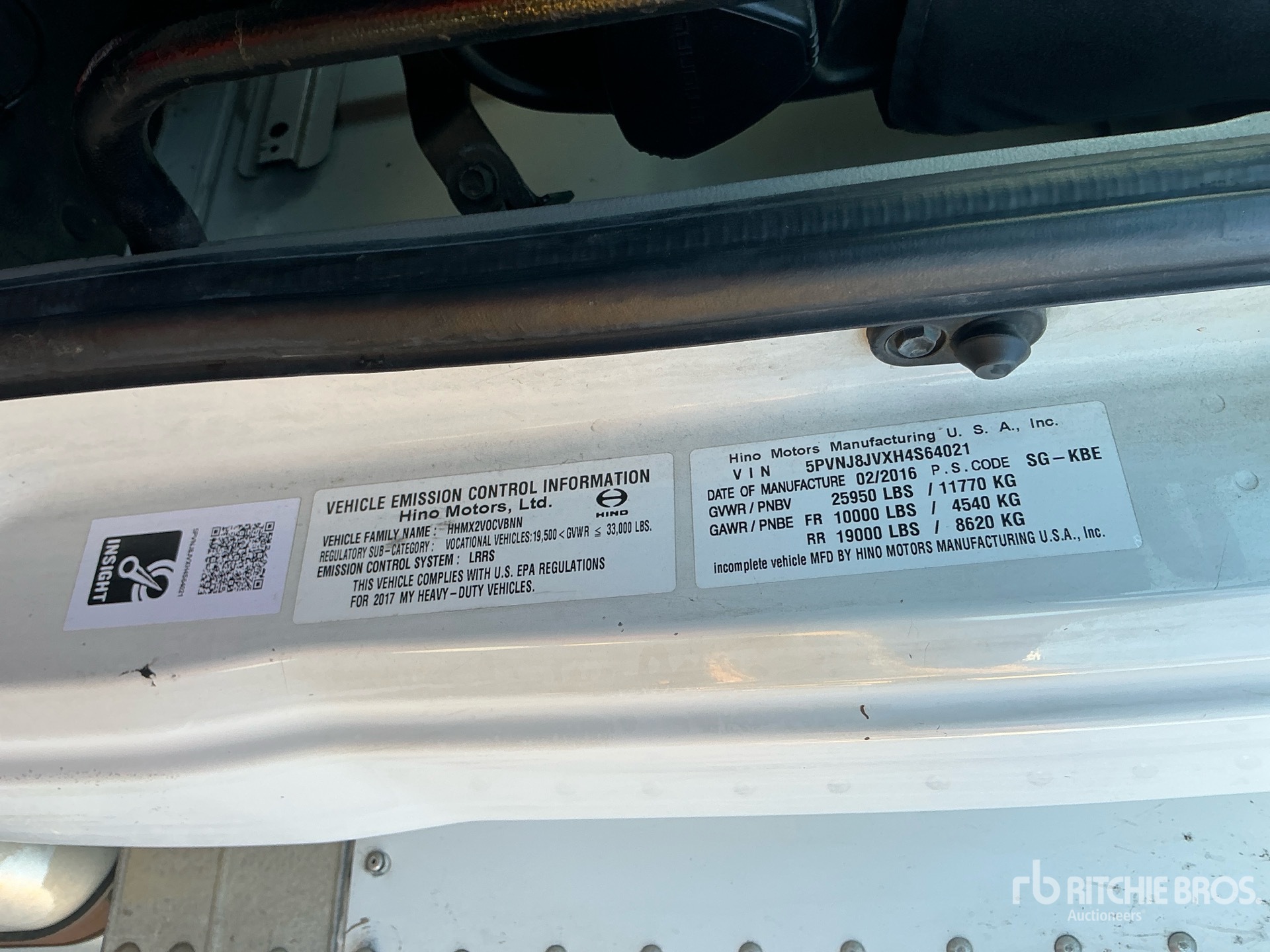 Located in Lane 35 Spot 50, Hino J08E 6 Cylinder 7.6 L Diesel Engine, Automatic Transmission, 10000 lb Front Axle, 19000 lb Rears, 25950 lb GVWR, 11R22.5, Air Ride Suspension, Morgan 26 ft x 102 in Wide x 96 in High Body, Liftgate