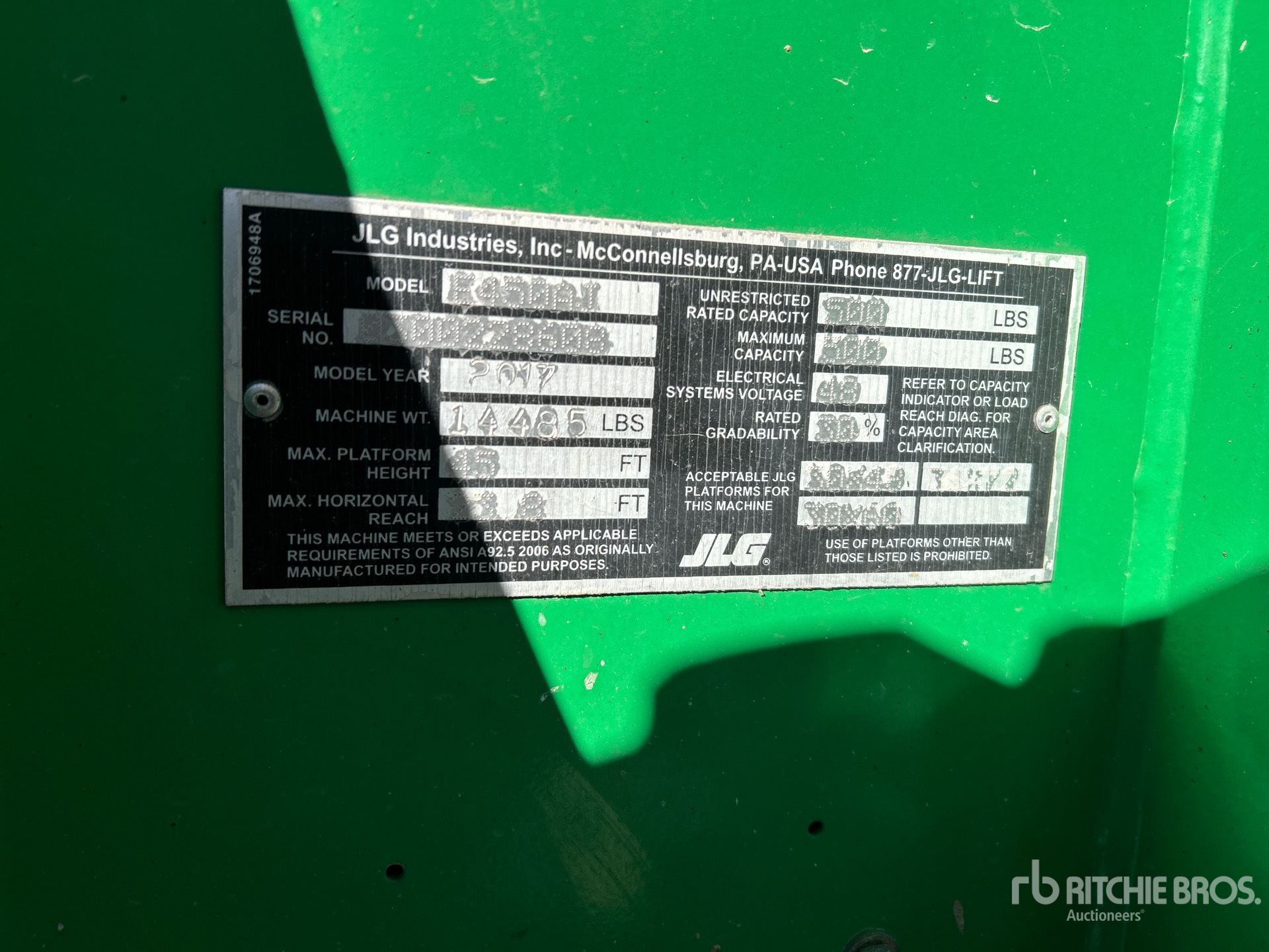 45 ft Max Platform Height, 500 lb Max Weight Capacity, Power to Platform, 240-55D Tires