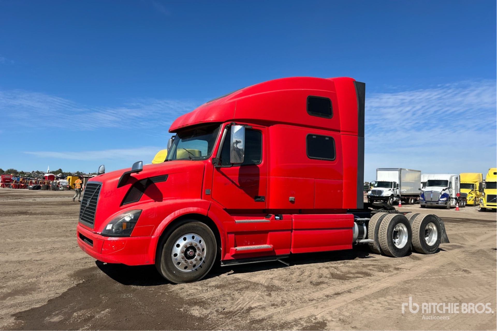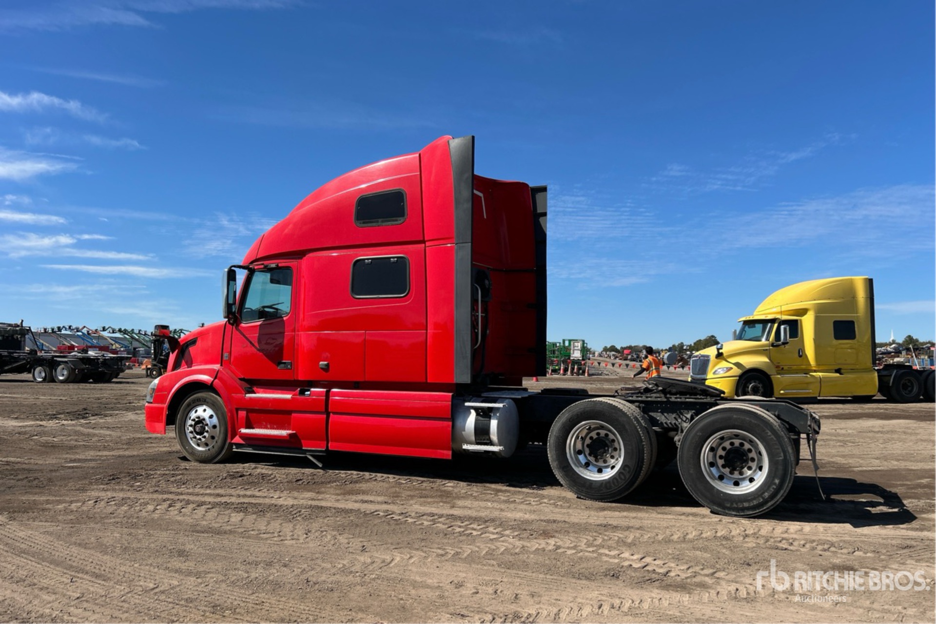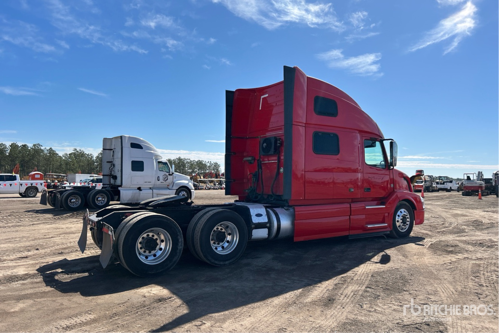 Located in Spot 29, Volvo D13 425 hp Engine, 22051 Engine hrs, Volvo ATO2612D 12-Speed Automated Transmission, 12350 lb Front Axle, 38000 lb Rears, 50350 lb GVWR, Engine Brake, 70 in High Rise Sleeper Cab, Bunk Beds, Auxiliary Power Unit, 240 in Wheelbase, Air Suspension, Aluminum Wheels, 295/75R22.5, Air Sliding 5th Wheel, Dual Fuel Tanks
