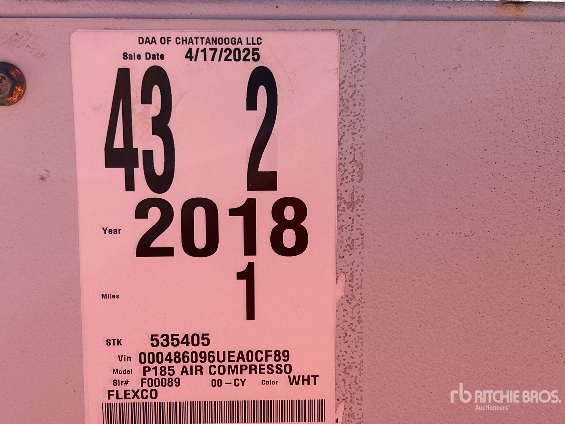 1.8 hrs-No guarantees made as to actual hours/miles/kilometers; the inspection report reflects what can be visually observed.