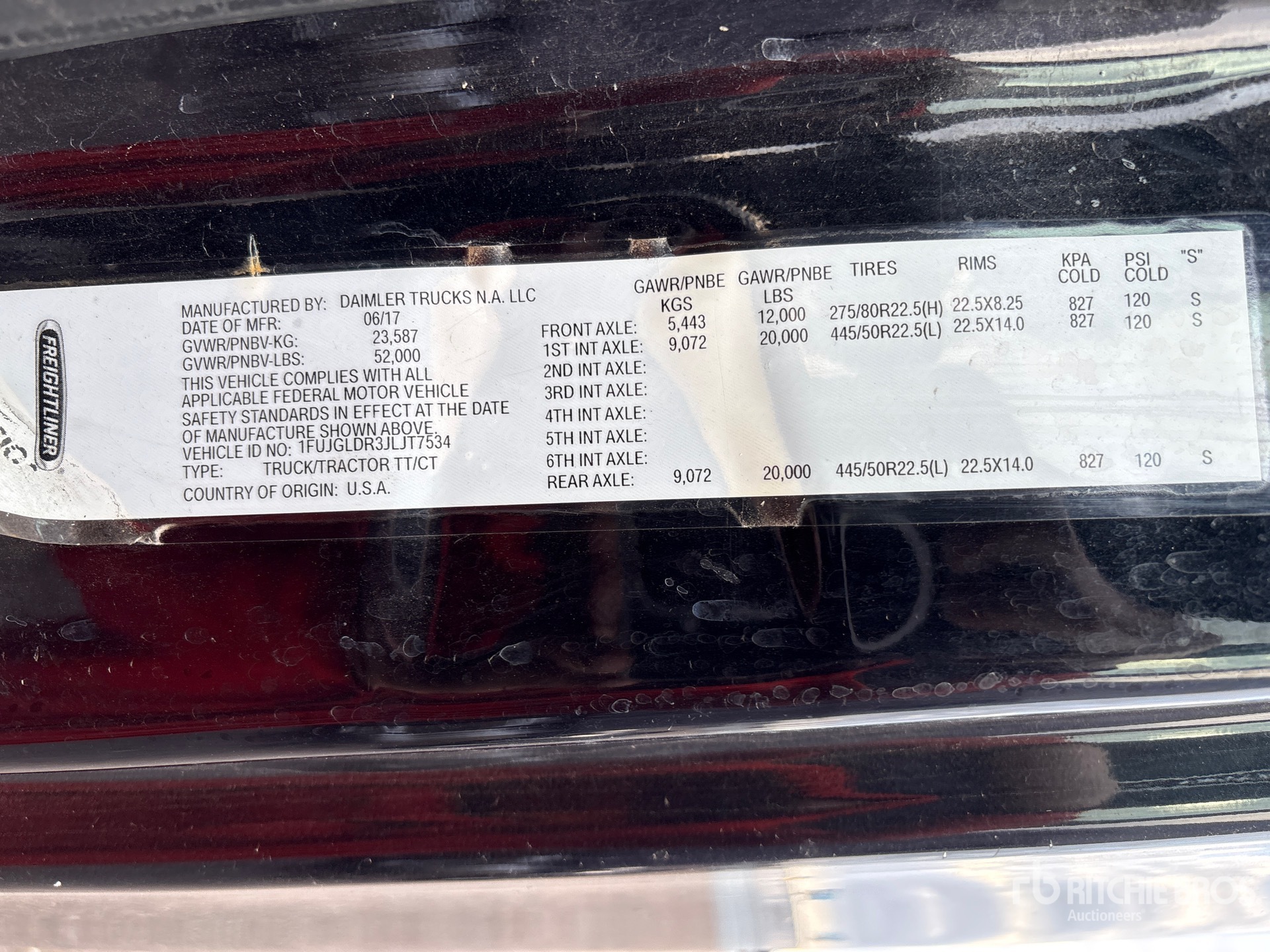 Detroit DD15 455 hp Engine, 2017 US EPA Label, Detroit DT-12-OA-1550 HD 12-Speed Automated Transmission, 12000 lb Front Axle, 40000 lb Rears, 52000 lb GVWR, Engine Brake, Differential Lock, 72 in Mid Roof Sleeper Cab, Bunk Beds, 240 in Wheelbase, Air Suspension, Aluminum Outer Wheels, 11R22.5 Front Tires, 11R22.5 Rear Tires, Air Sliding 5th Wheel, Dual Fuel Tanks, Headache Rack