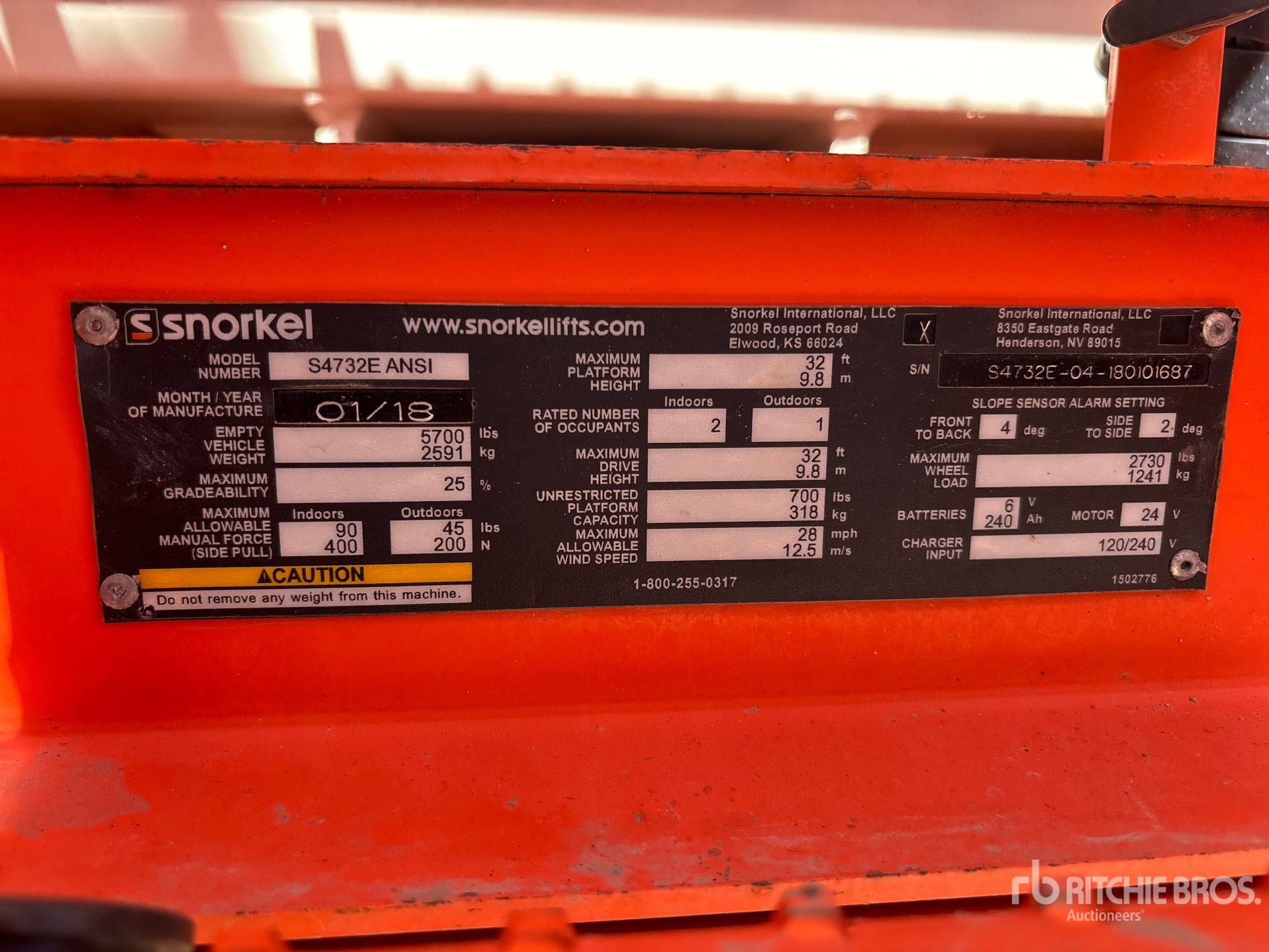 2018 Snorkel S4732E Electric シザーリフト