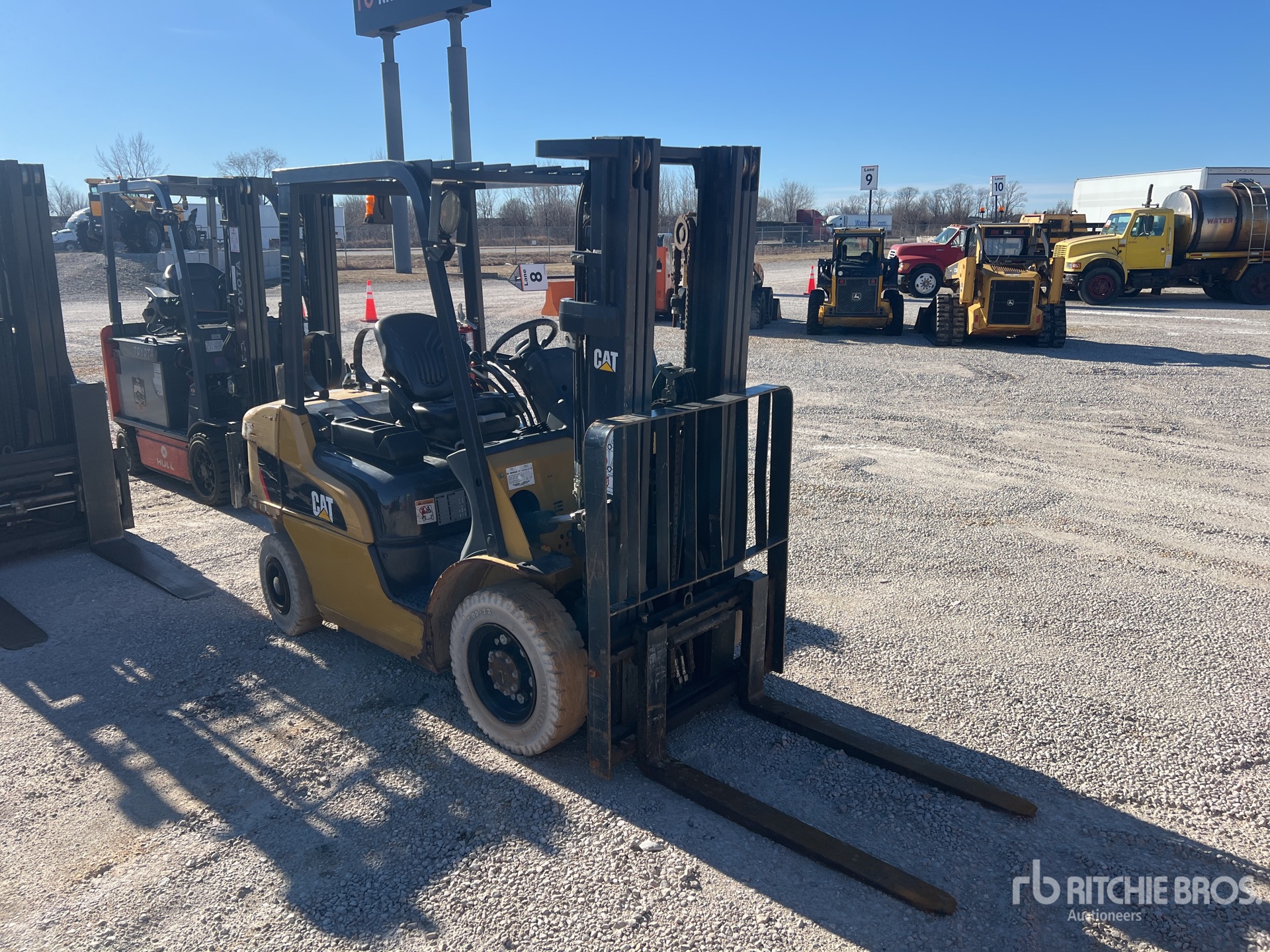 Located in Lane 7 Spot 2, 3 Stage Mast, 188 in Max Lift Height, 80 in Lowered Mast Height, 41 in Forks, Side Shift, Solid Pneumatic Tires, Tier 2, 2018 US EPA Label, GCT GK25 4 Cylinder 2.5 L Dual Fuel Engine