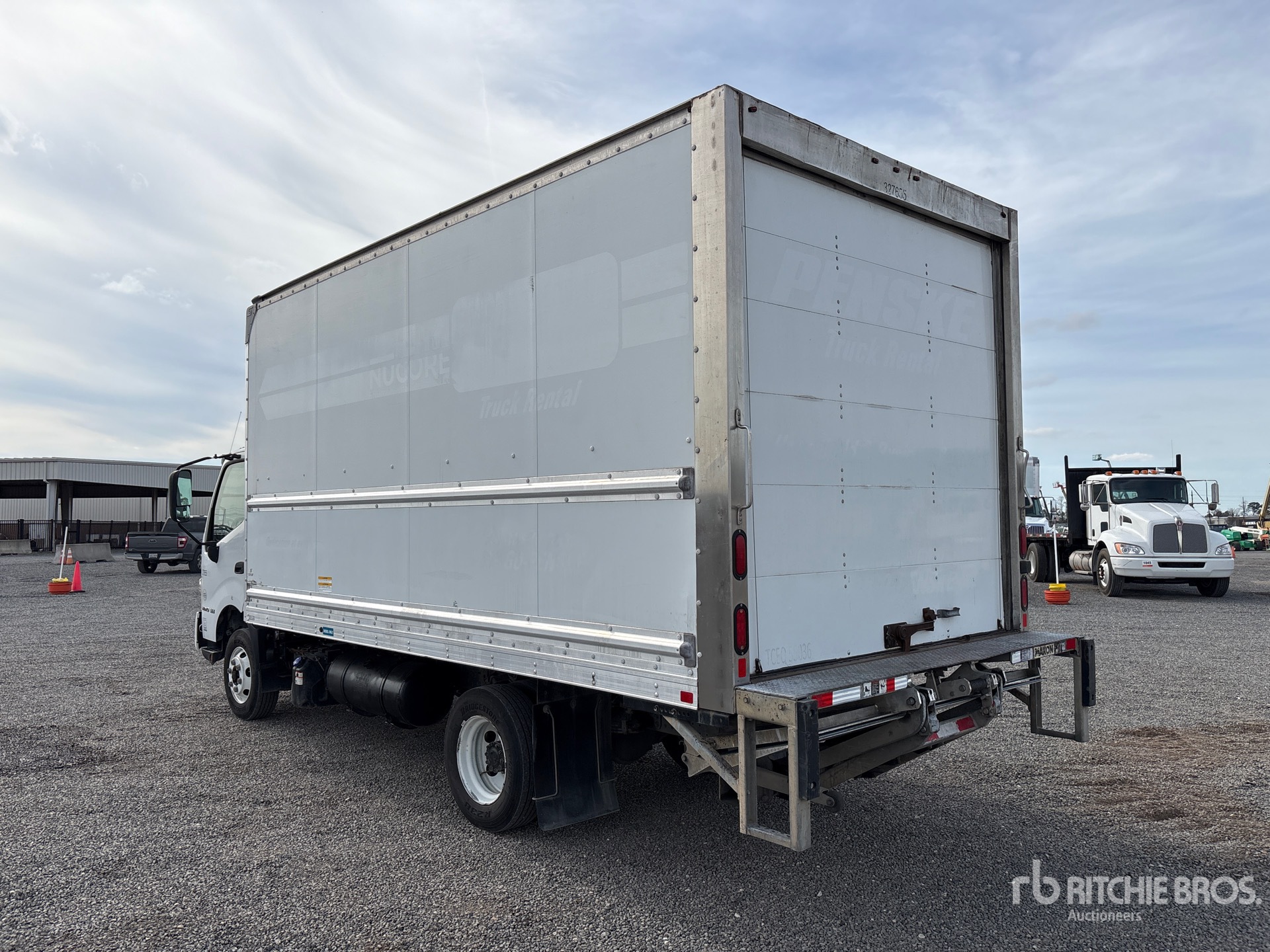 Located in Lane 35 Spot 34, Hino J05E-TP 4 Cylinder Diesel Engine, 2018 US EPA Label, Requires Diesel Exhaust Fluid, Automatic Transmission, 5950 lb Front Axle, 9880 lb Rears, 14500 lb GVWR, 215/75R17.5, Spring Suspension, 157 in Wheelbase, Supreme 15 ft x 96 in Wide x 71 in High Body, Liftgate, Professionally-Maintained-Fleet-Vehicle-PAG