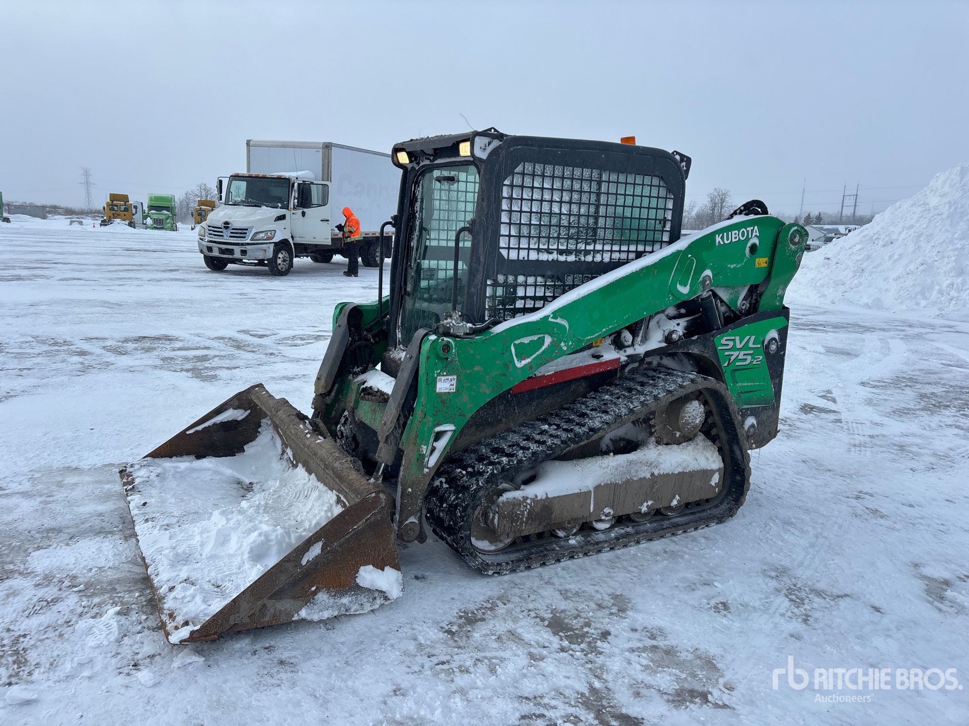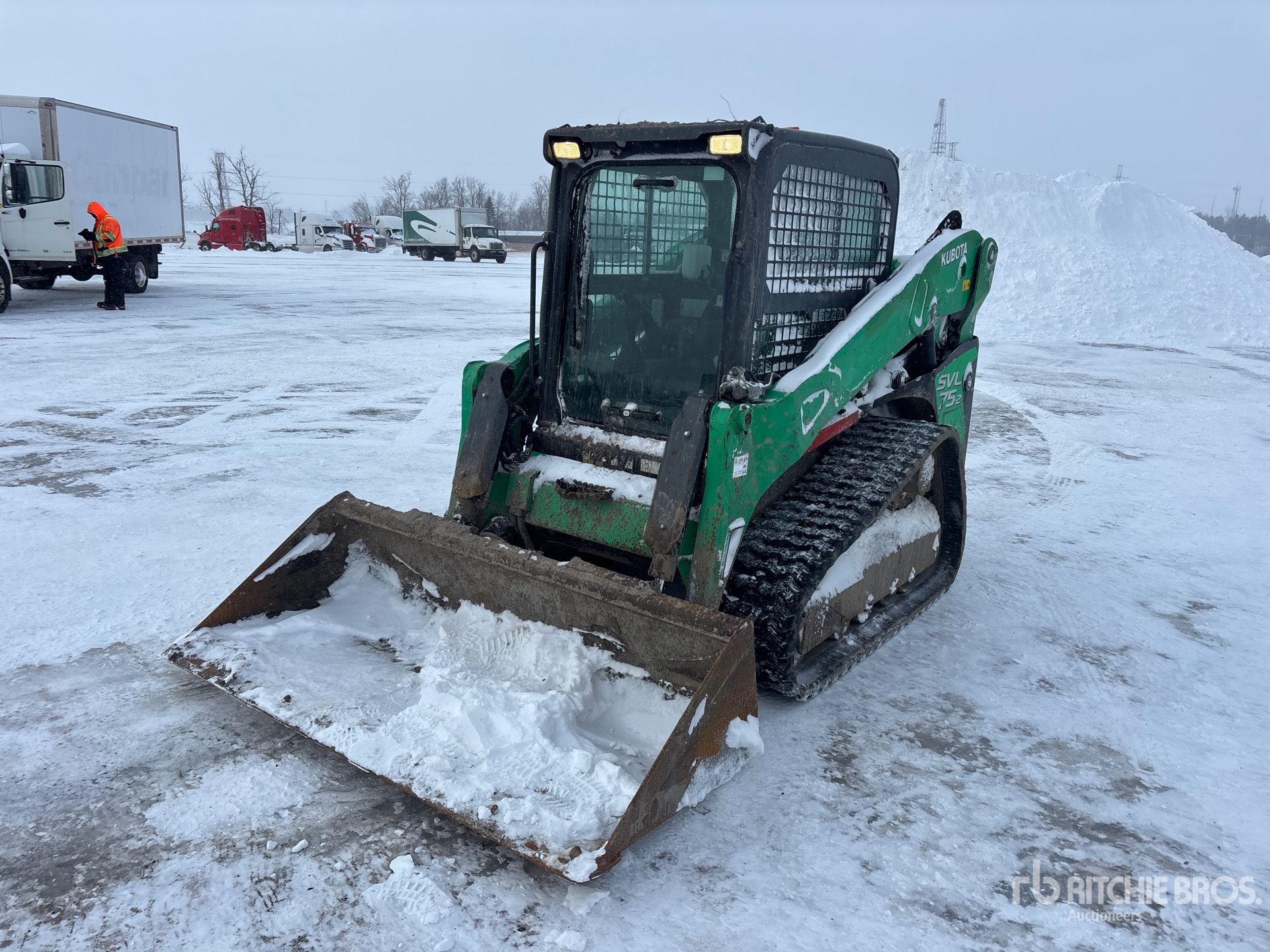 Enclosed Cab, Air Conditioner, Joystick Steering, 15 in Track Belts, Hydraulic Coupler, 75 in Bucket