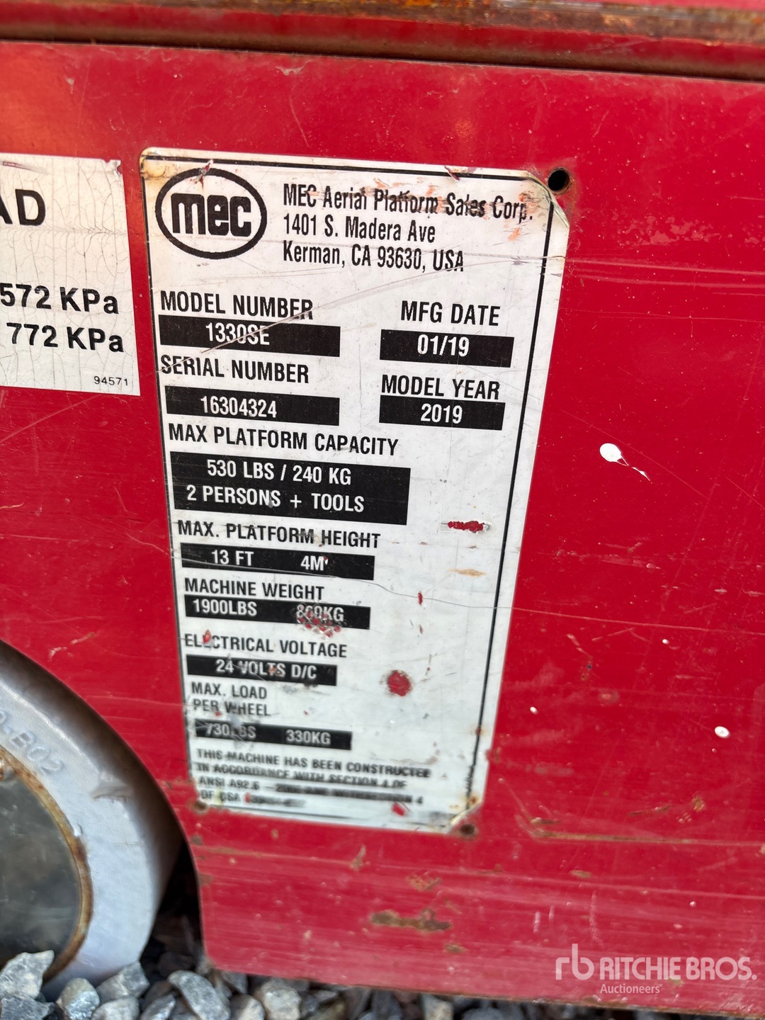機械の詳細情報は範囲に制限があり、Ritchie Bros. Auctioneersは、ここに明記するもの以外の設備やコンポーメントの検査は行っていません。特に明記されていない限り、明示的または黙示的かにかかわらず、Ritchie Bros.は機械やそのコンポーネントに関する一切の責任を負わないものとします。機能性、快適性、あるいは関係官庁や規制機関が定める安全基準や要件に関する準拠性、特定目的への適合性、または商品性に関する表明や保証も含まれますが、これらに限るわけではありません。お客様には入札される前に必ず機械の検品を行うことをお勧めします。