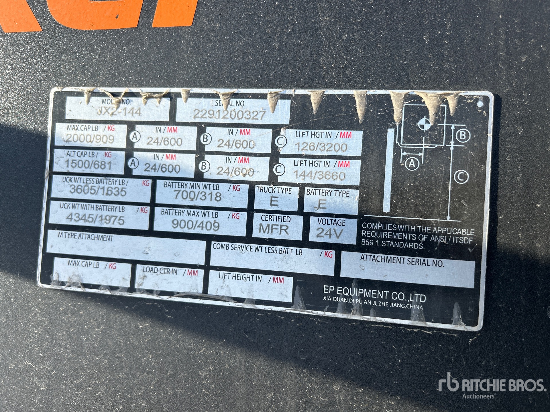 2 Stage Mast, 144 in Max Lift Height, 126 in Lowered Mast Height, 42 in Forks, 24 V