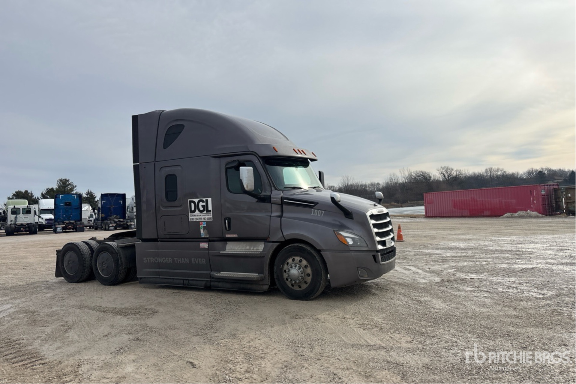 Located in Lane 15 Spot 8, Detroit DD15 505 hp Engine, 2021 US EPA Label, 26694 Engine hrs, Detroit DT12-1650-OHE EFFICIENT 12-Speed Automated Transmission, 13300 lb Front Axle, 40000 lb Rears, 53300 lb GVWR, Engine Brake, 70 in High Rise Sleeper Cab, Bunk Beds, 229 in Wheelbase, Air Suspension, Aluminum Wheels, 295/75R22.5, Air Sliding 5th Wheel, Dual Fuel Tanks, Lowboy Ramps