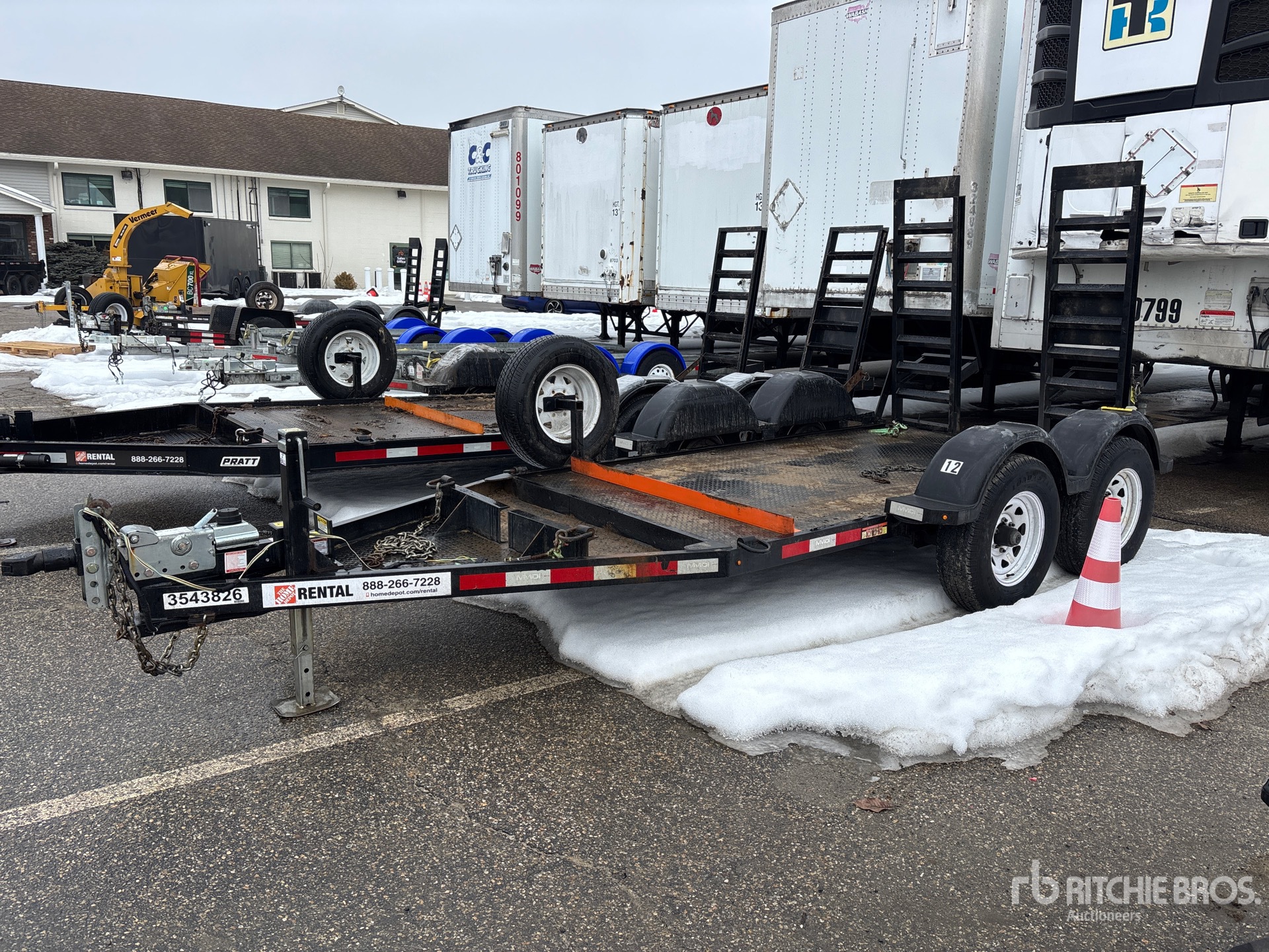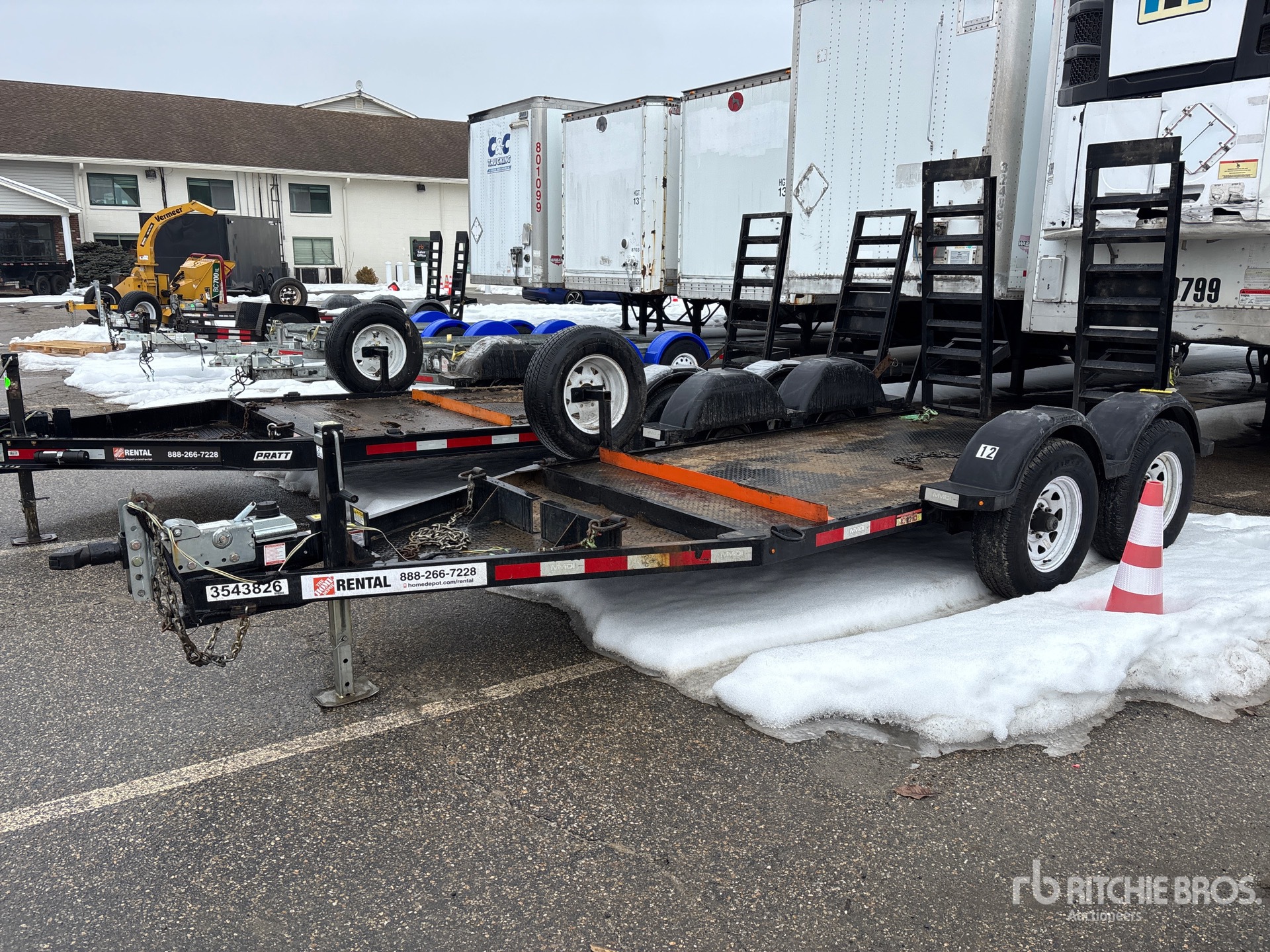 Ball Hitch, Torsion Axle, Surge Brakes, 10 ft Main Deck, 61 in Usable Deck Width, 64 in Overall Deck Width, Manual Ramps, Steel Decking, 225/75R15 Tires, 6990 lb GVWR