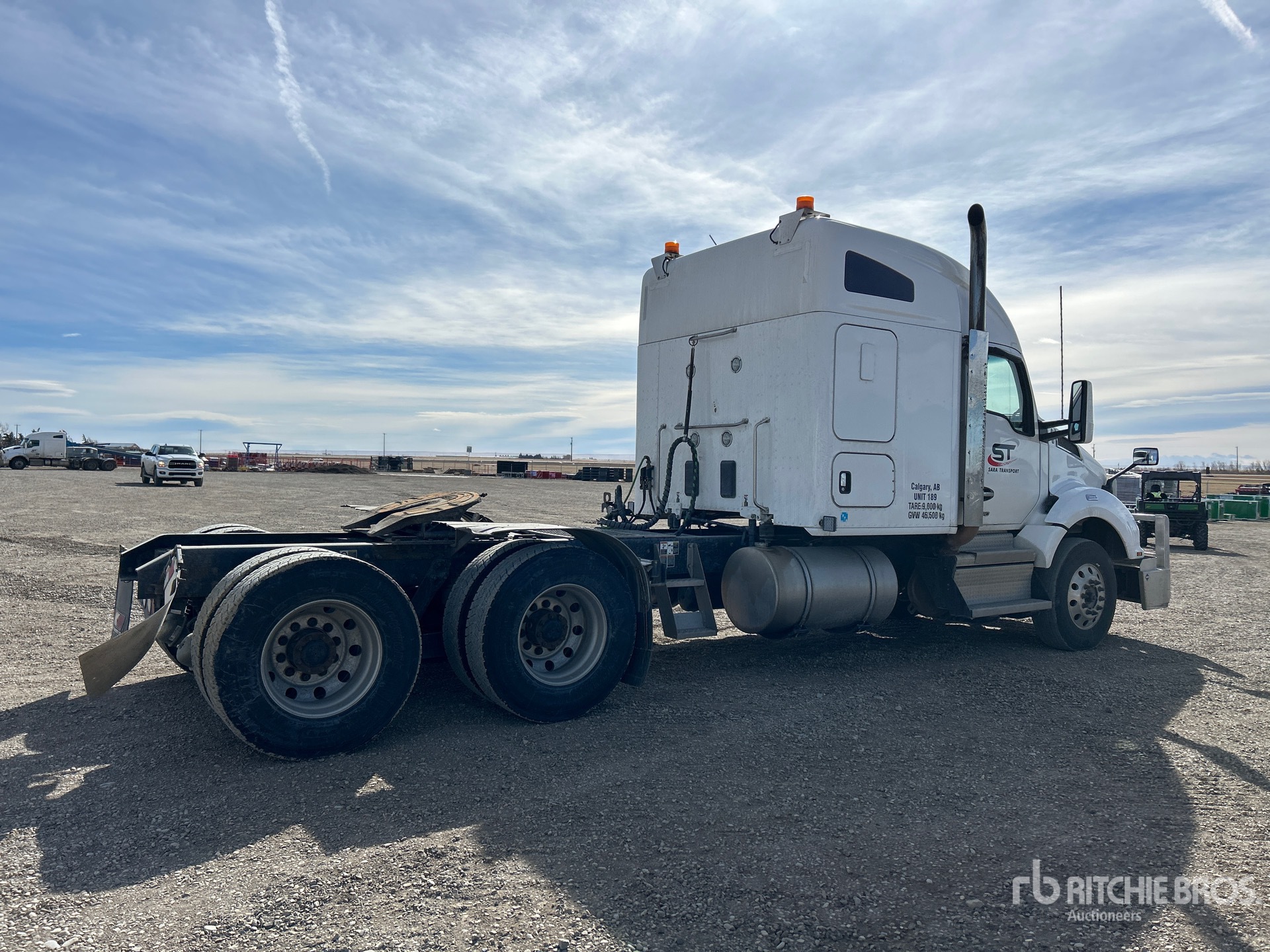 Paccar MX-13 380 hp Engine, Engine Coolant Heater, 2021 US EPA Label, 5847 Engine hrs, Eaton Fuller RTLO1891 18-Speed Manual Transmission, 13200 lb Front Axle, 40000 lb Rears, 53200 lb GVWR, Double Differential Locks, 62 in Mid Roof Sleeper Cab, Bunk Heater, 240 in Wheelbase, 8-Bag Air Suspension, Aluminum Wheels, 12R22.5, Air Sliding 5th Wheel, Dual Fuel Tanks