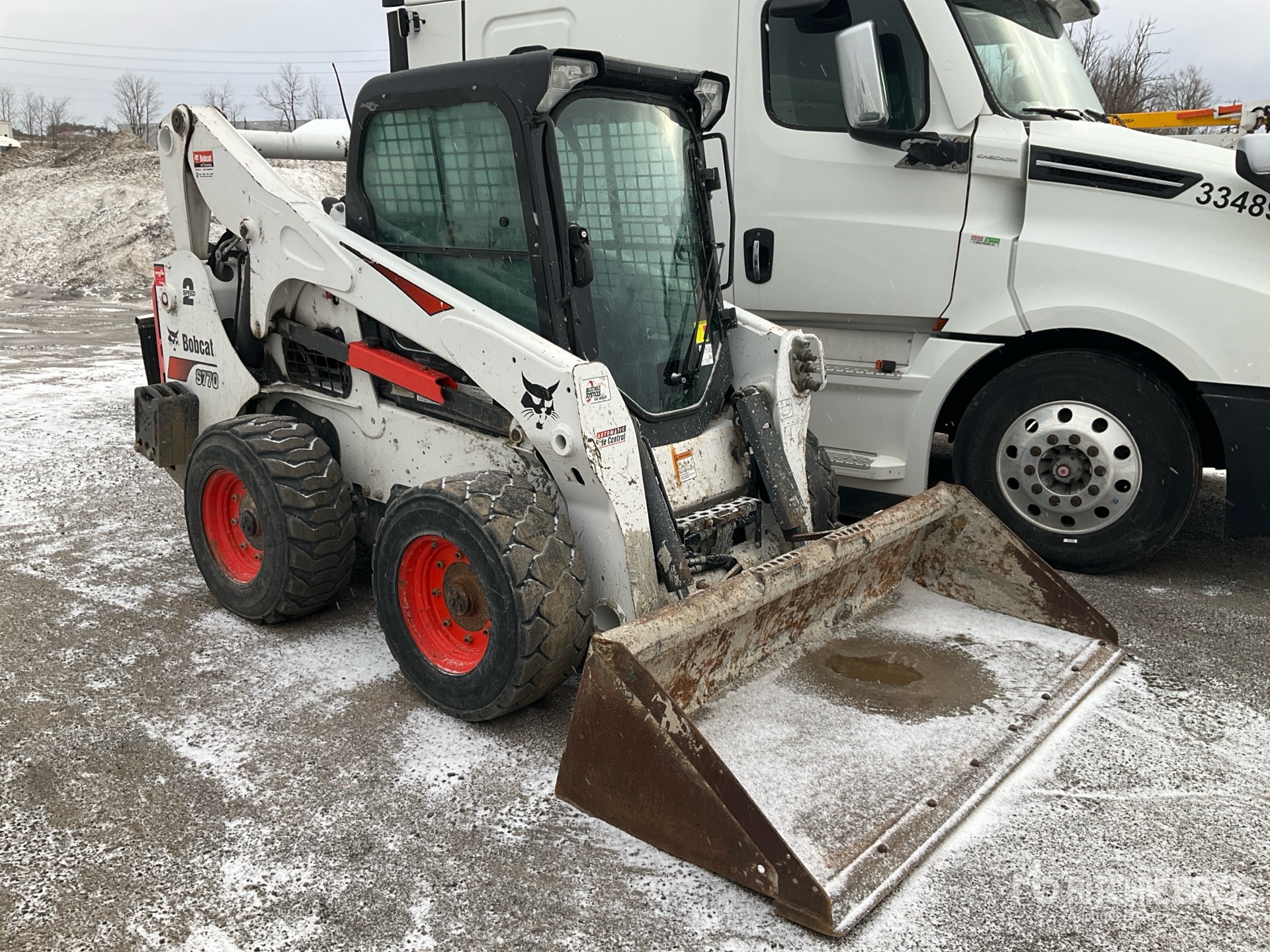 Enclosed Cab, Air Conditioner, Ride Control, Joystick Steering, Control Pattern Changer, Hydraulic Coupler, 79 in Bucket, Counterweight Kit