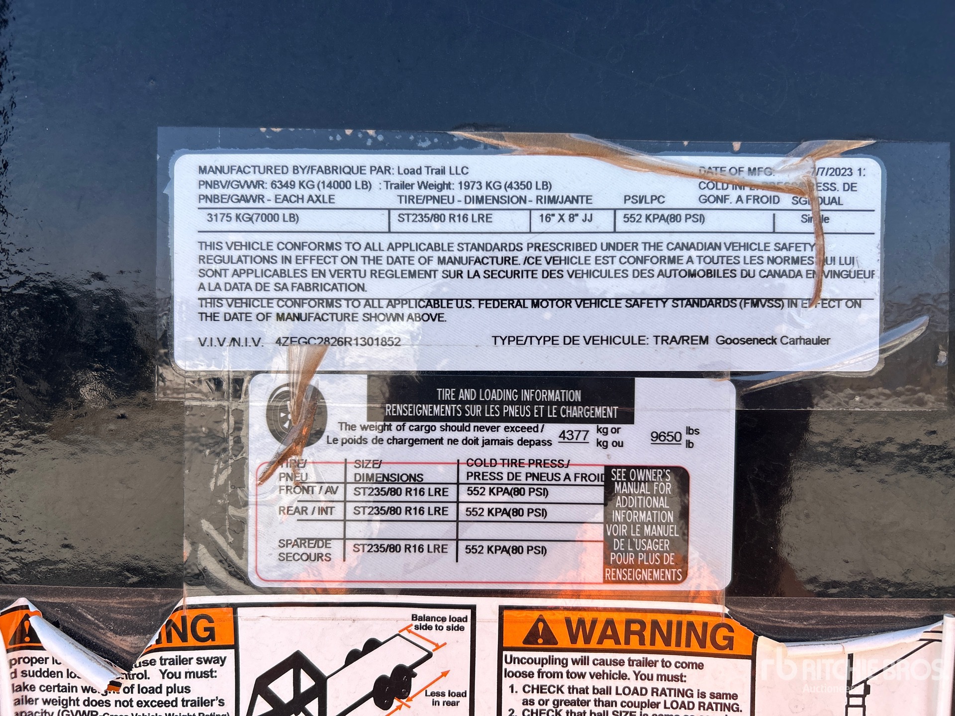 Spring Suspension, Electric Brakes, 235/80R16 Tires, 14000 lb GVWR